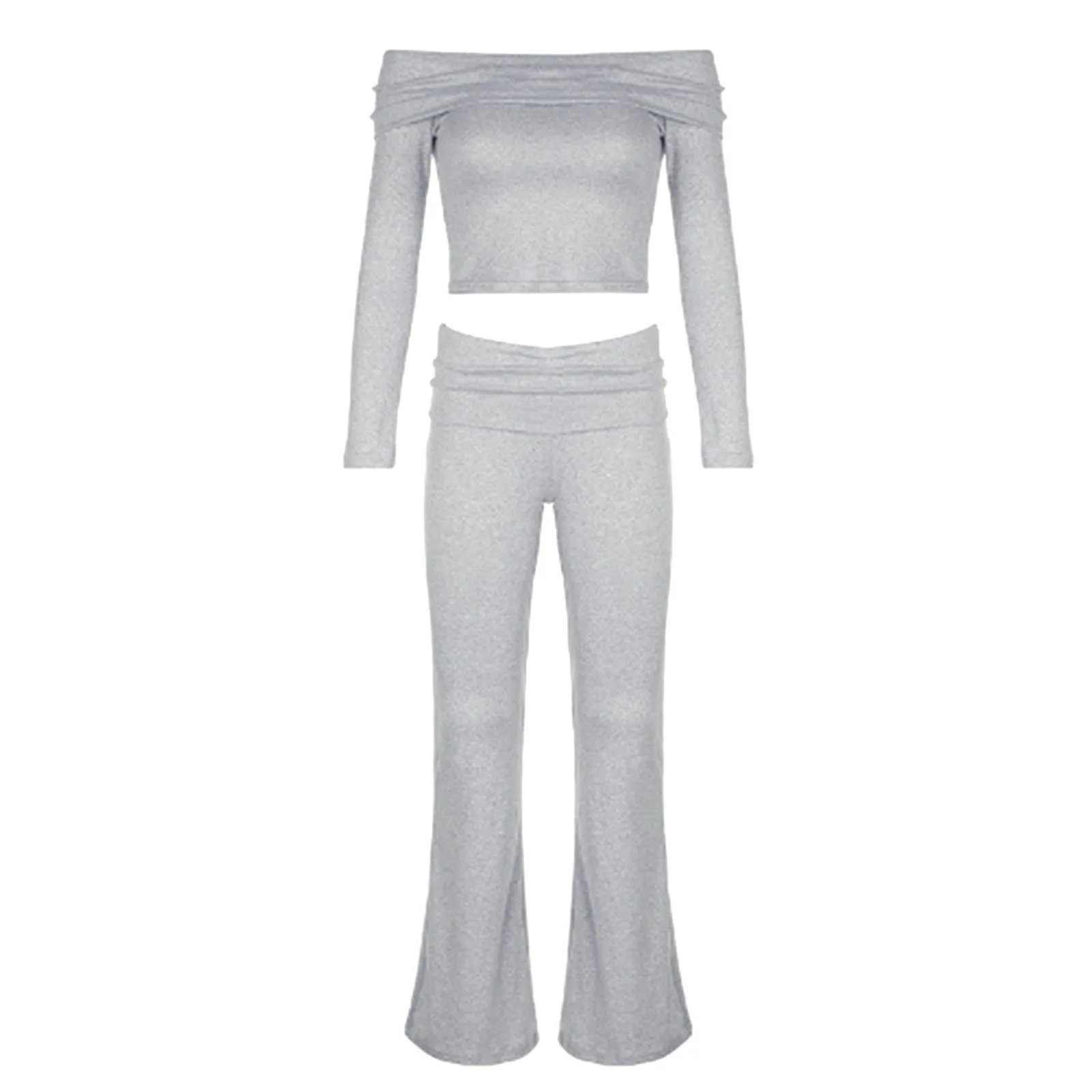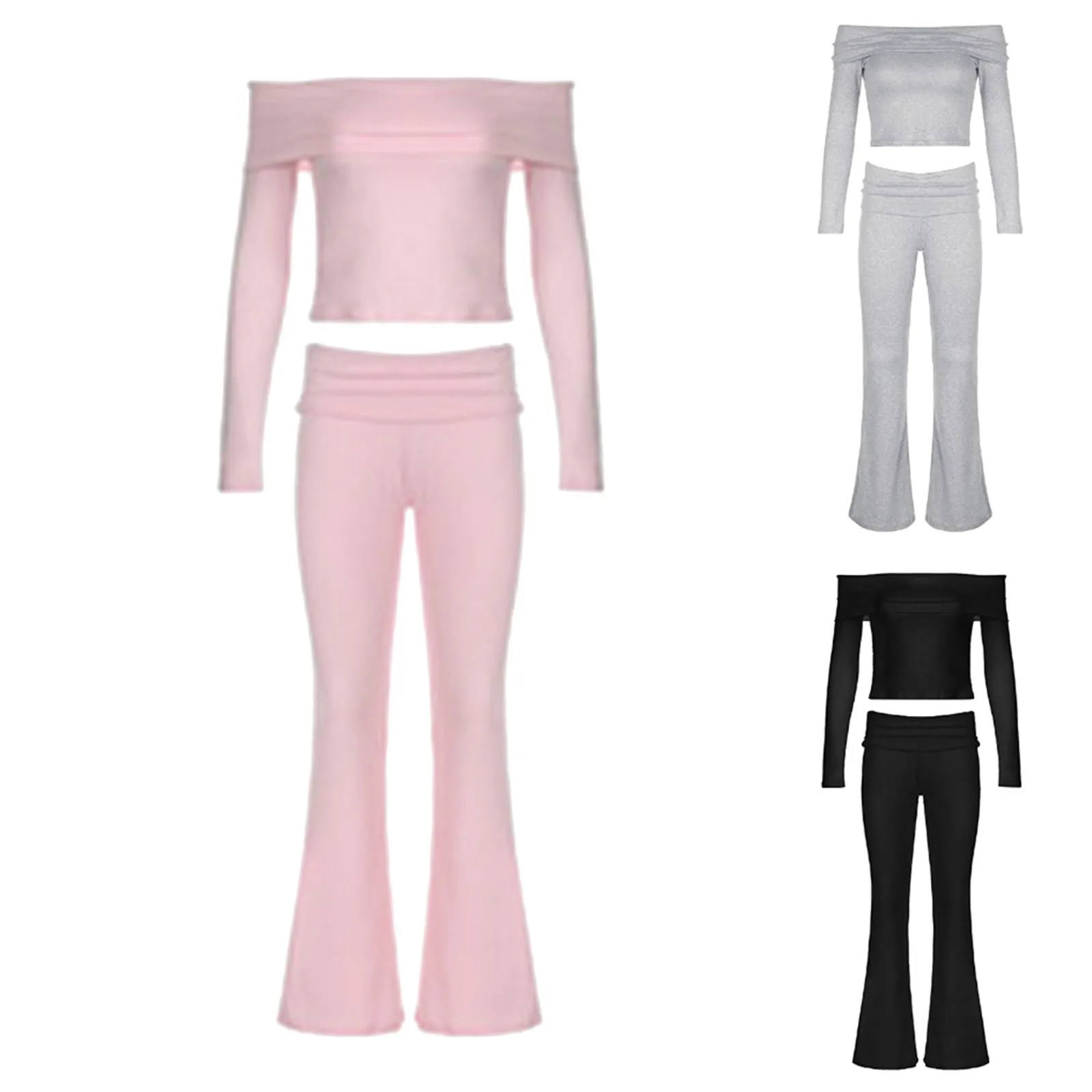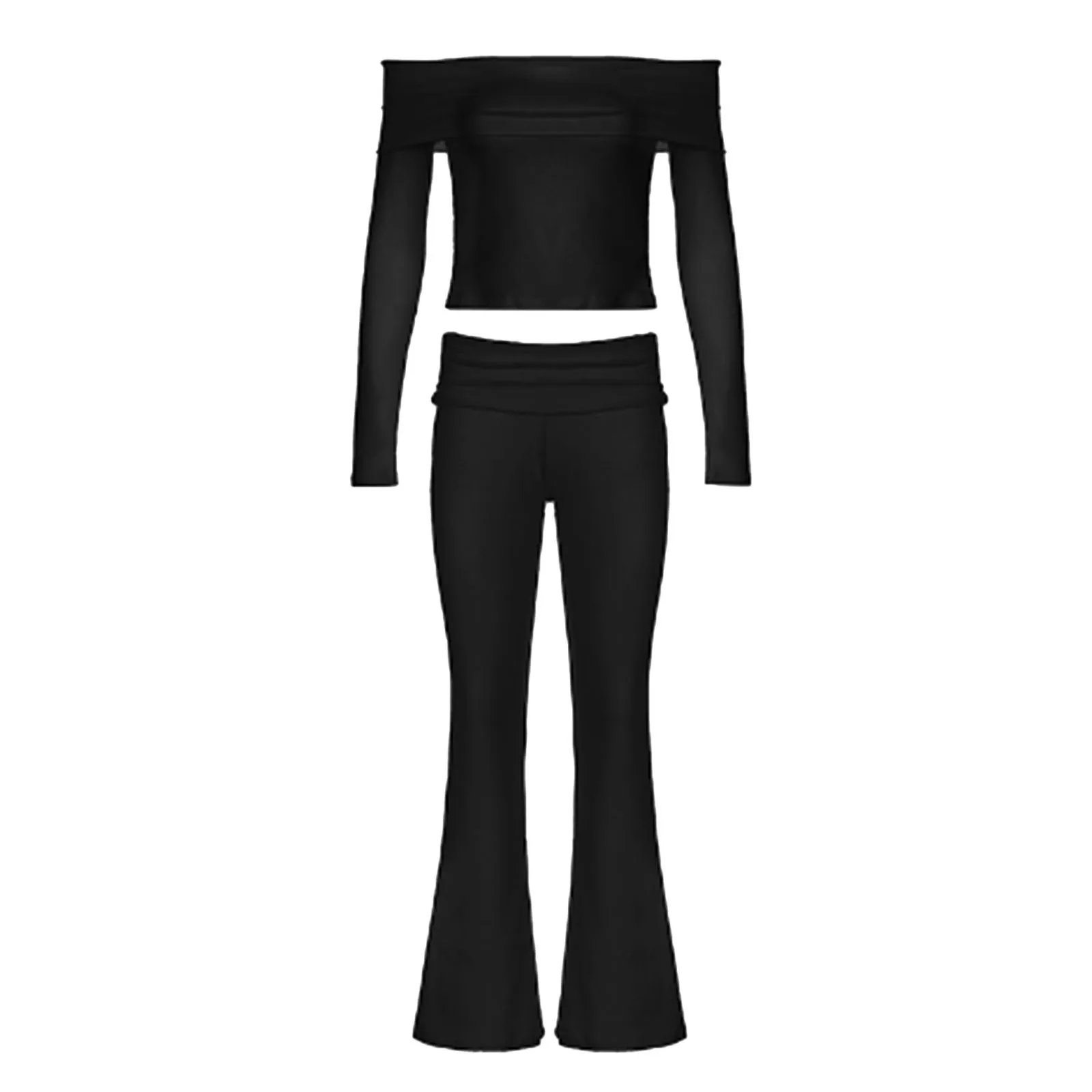 المرأة 2 قطعة الزي طويل الأكمام قبالة الكتف اقتصاص أعلى مع طويل متوهج اليوغا السراويل ملابس رياضية مجموعة تمتد الجوارب بذلة ملابس منزلية
