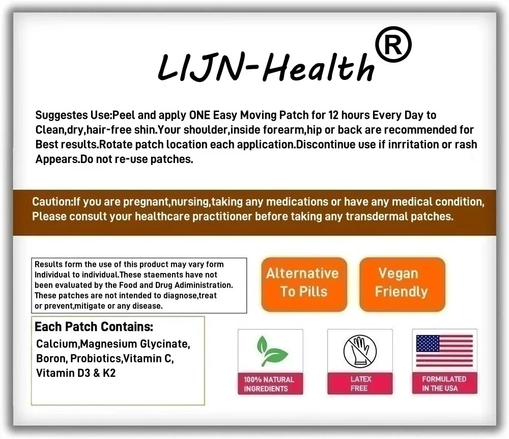 30 رقعة كالسيوم AKG عبر الجلد مع فيتامين D3 وK2 لصحة العظام والطاقة