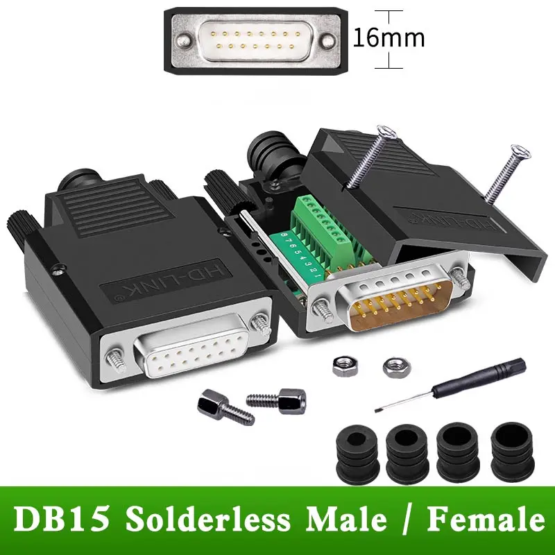 1 قطعة سبيكة صناعية موصل DB15 خالية من اللحام 2 صفوف 15Pin موصل الاختراق DB15 ذكر أنثى التوصيل D-SUB محول طرفي