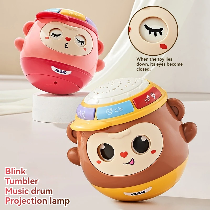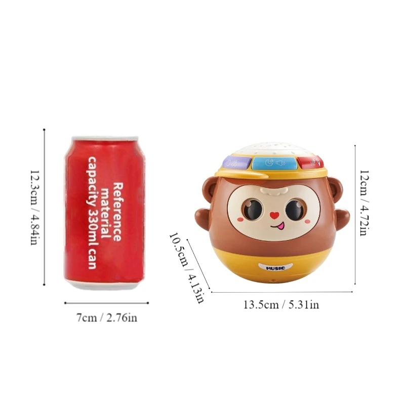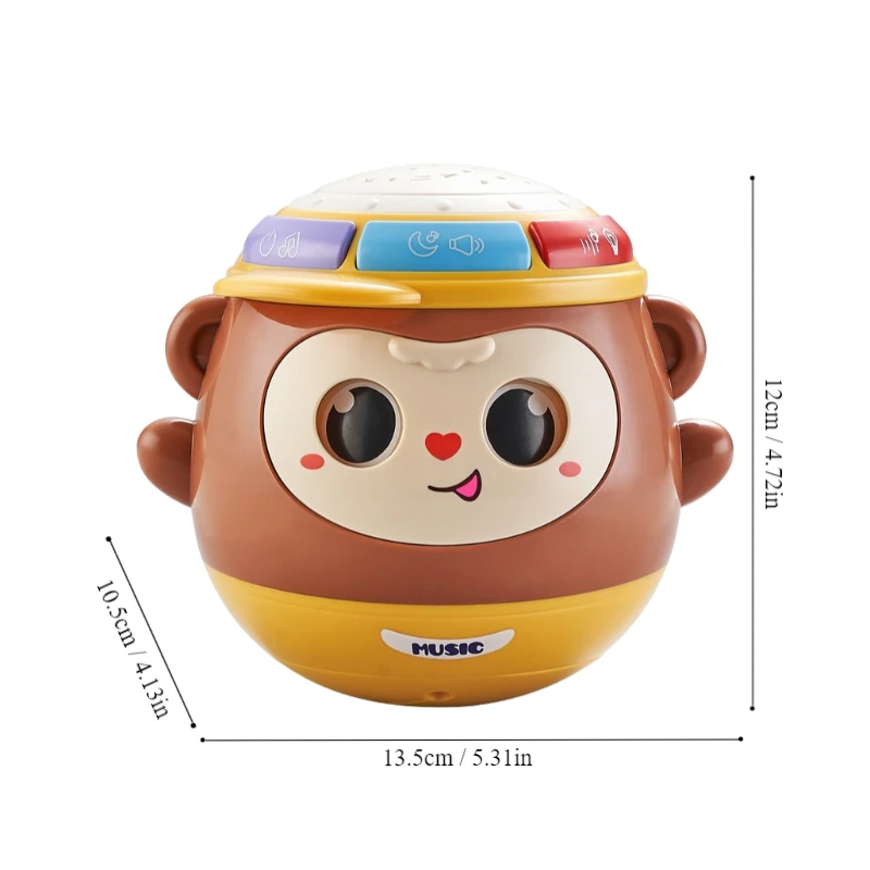 1 قطعة لعبة طبلة يدوية القرد يمكن وميضها ، التعليم المبكر متعددة الوظائف إيقاع الإسقاط لعبة طبلة يدوية مع الضوء والموسيقى