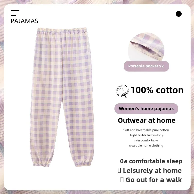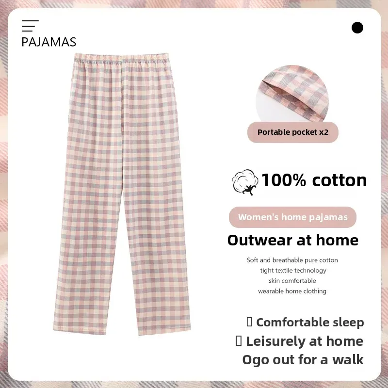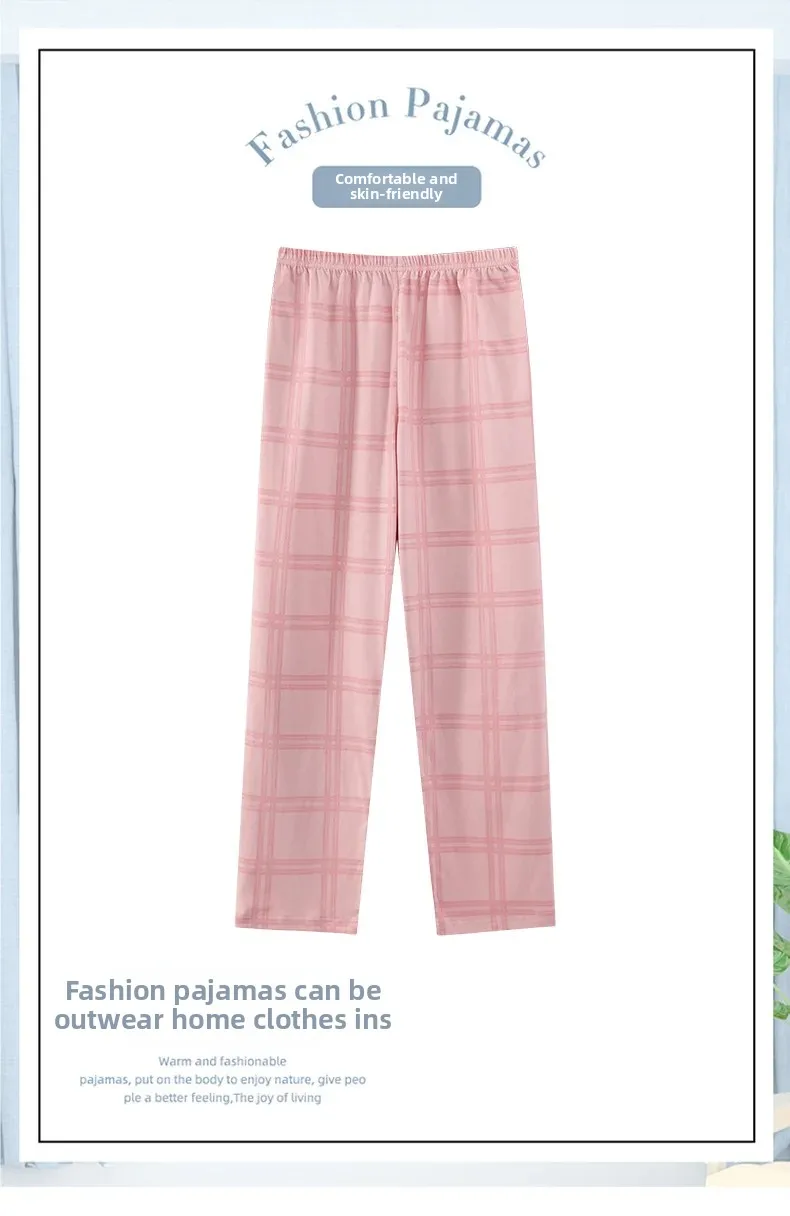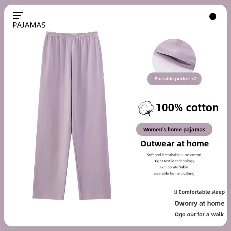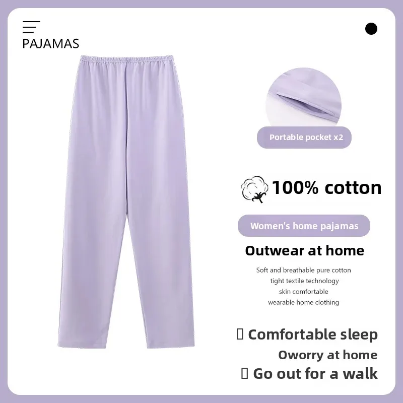 ملابس نوم للسيدات من القطن الخالص ملابس منزلية فضفاضة غير رسمية يمكن ارتداؤها في الهواء الطلق سراويل قطنية كاملة للخريف والشتاء مقاس كبير