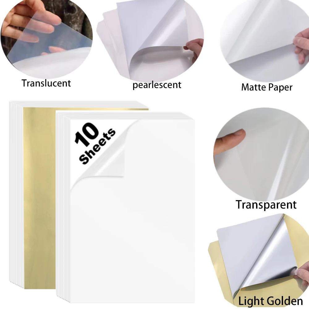 اسم العنصر: 10 ورقة ورق لاصق من الفينيل قابل للطباعة A4 ورق طابعة نافثة للحبر ذاتي اللصق شفاف للطابعة النافثة للحبر DIY بها بنفسك الشارات هدية الحرف