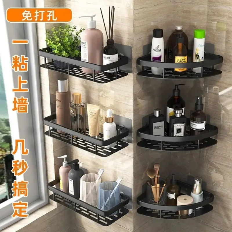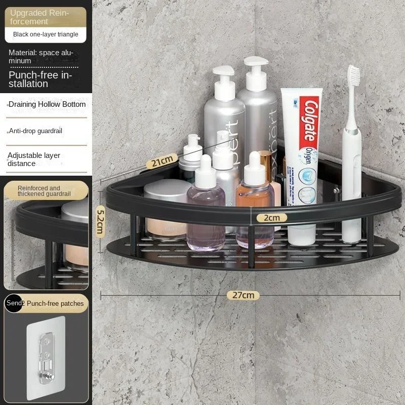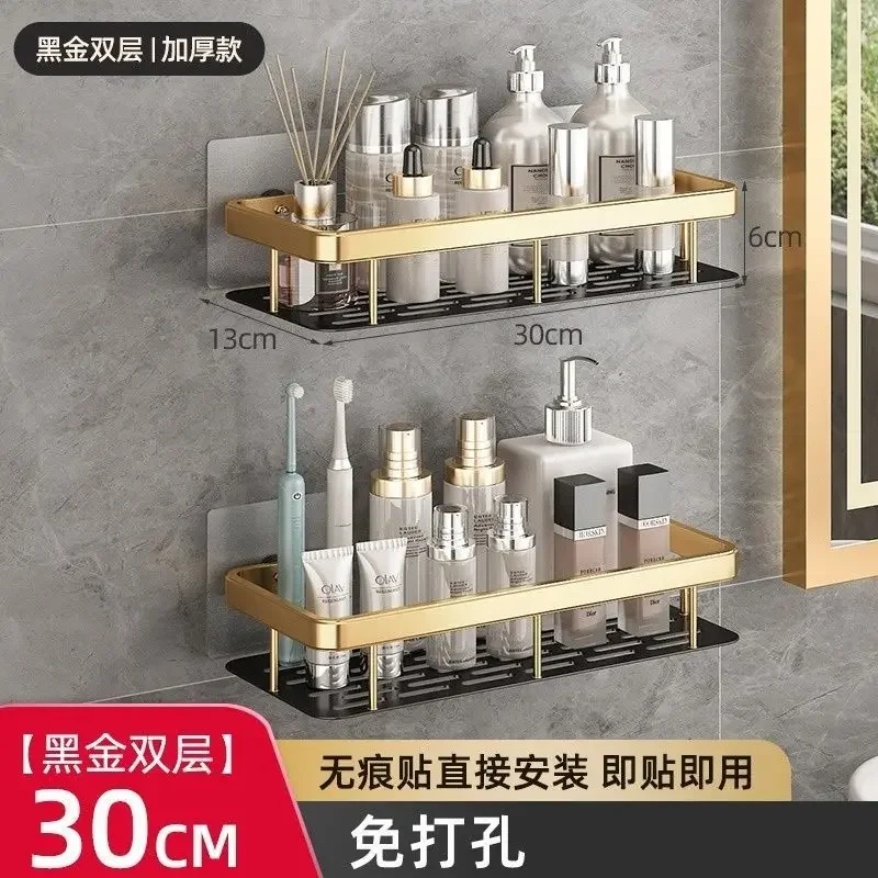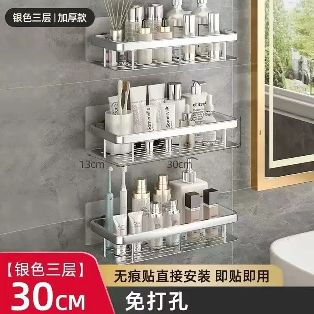 رف تخزين الحمام من الألومنيوم رف تخزين مستحضرات التجميل المثبت على الحائط مناسب لتخزين عناصر الحمام وإكسسوارات الدش