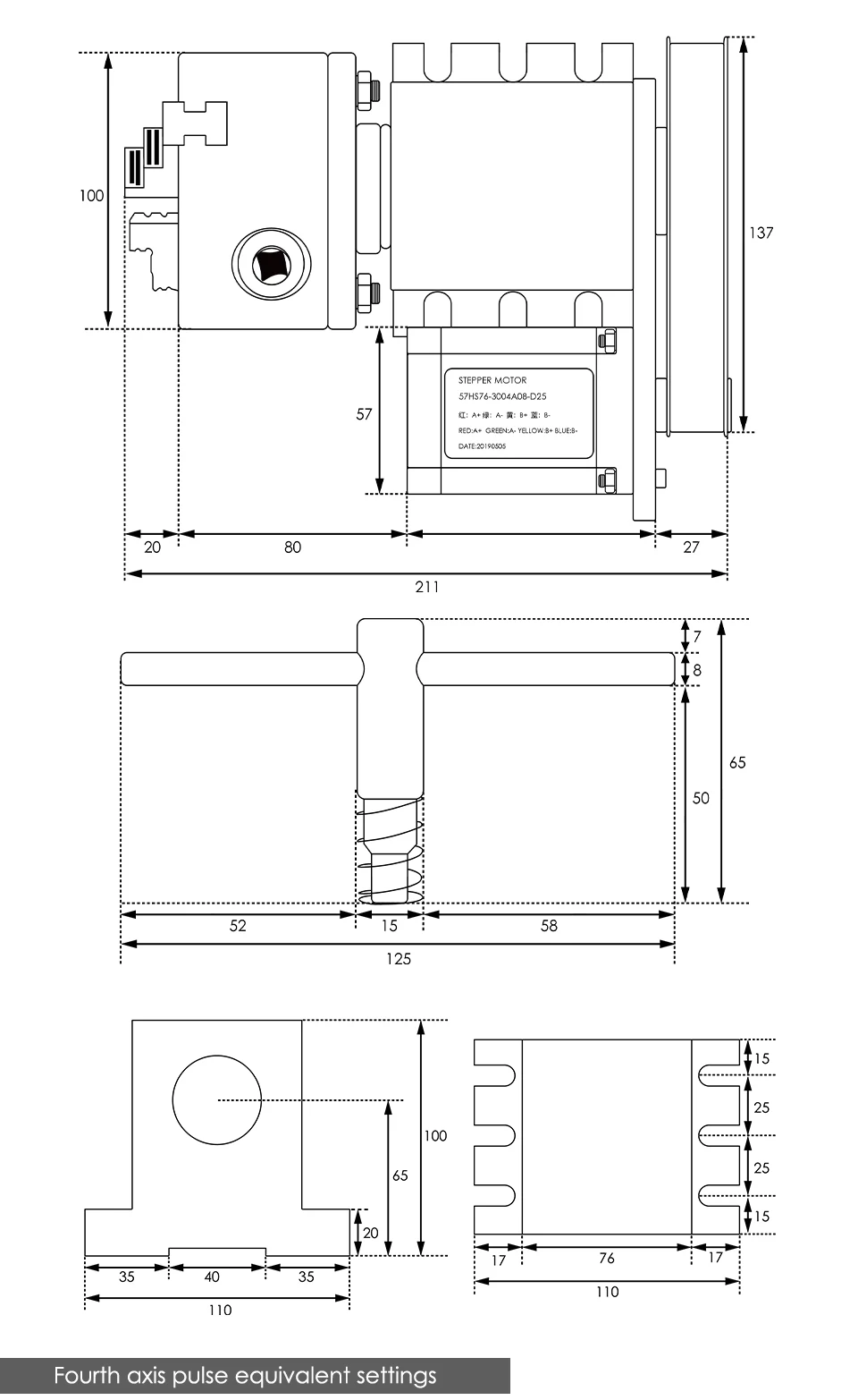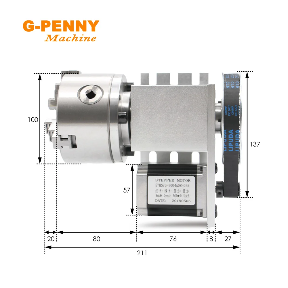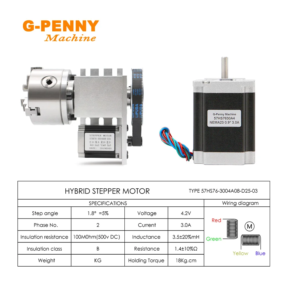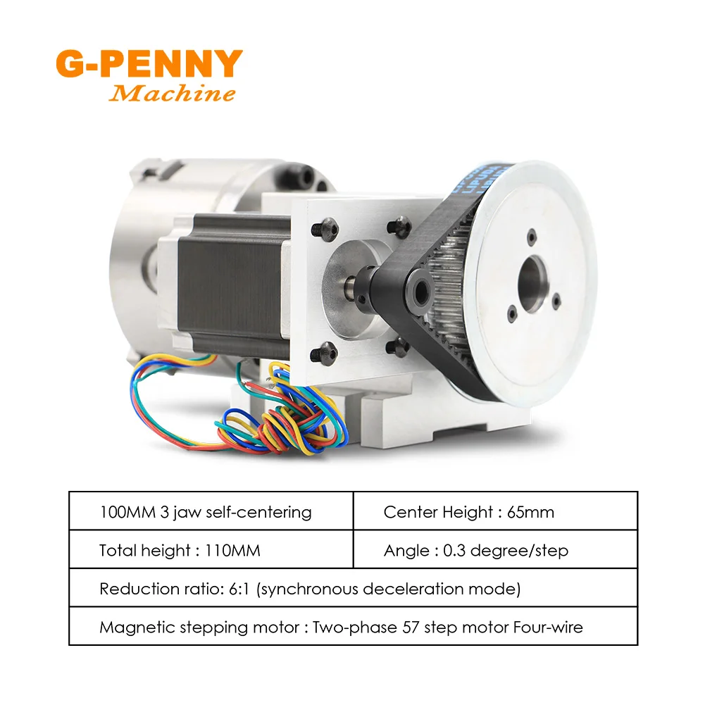 G-PENNY 4th Axis 3/4Jaw 100mm with Tailstock dividing head/Rotation/A axis 57HS7630A4 for Mini router/engraver machine R