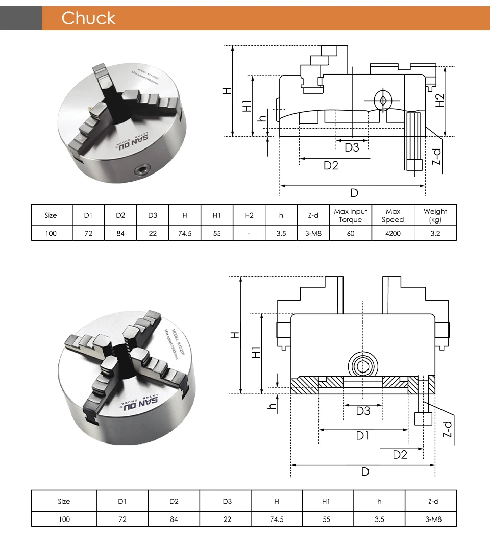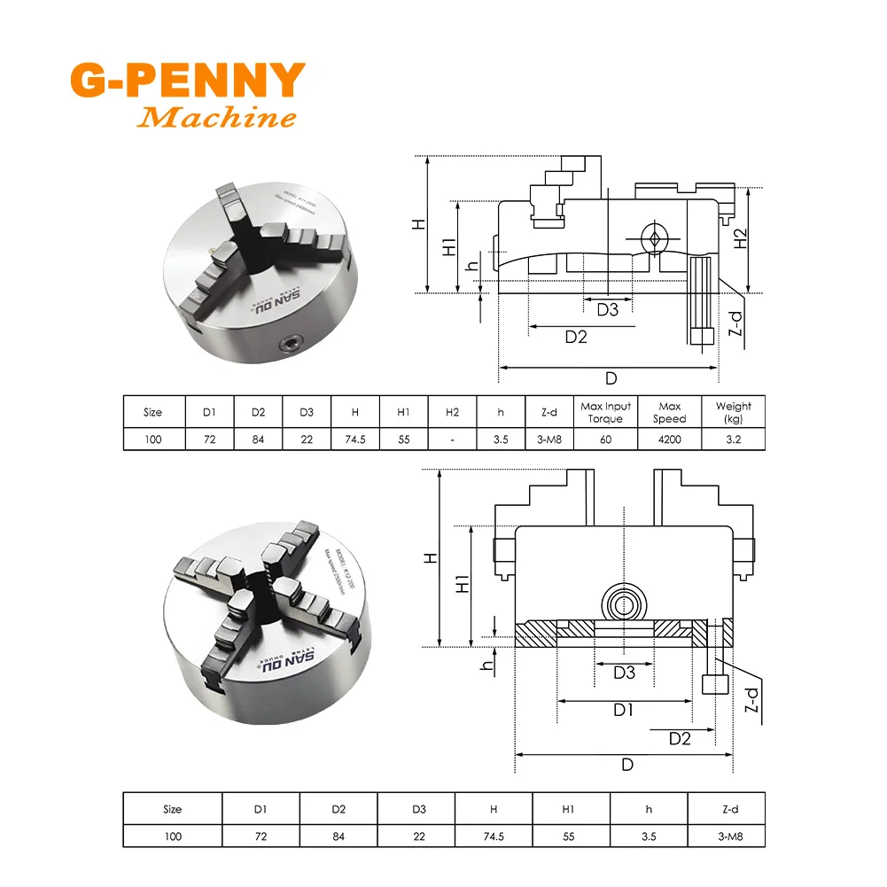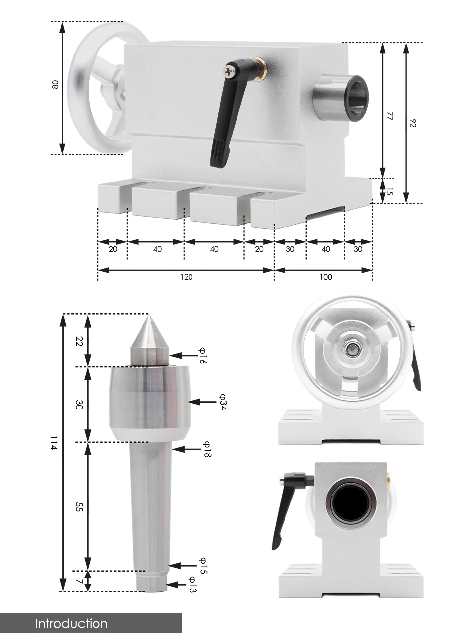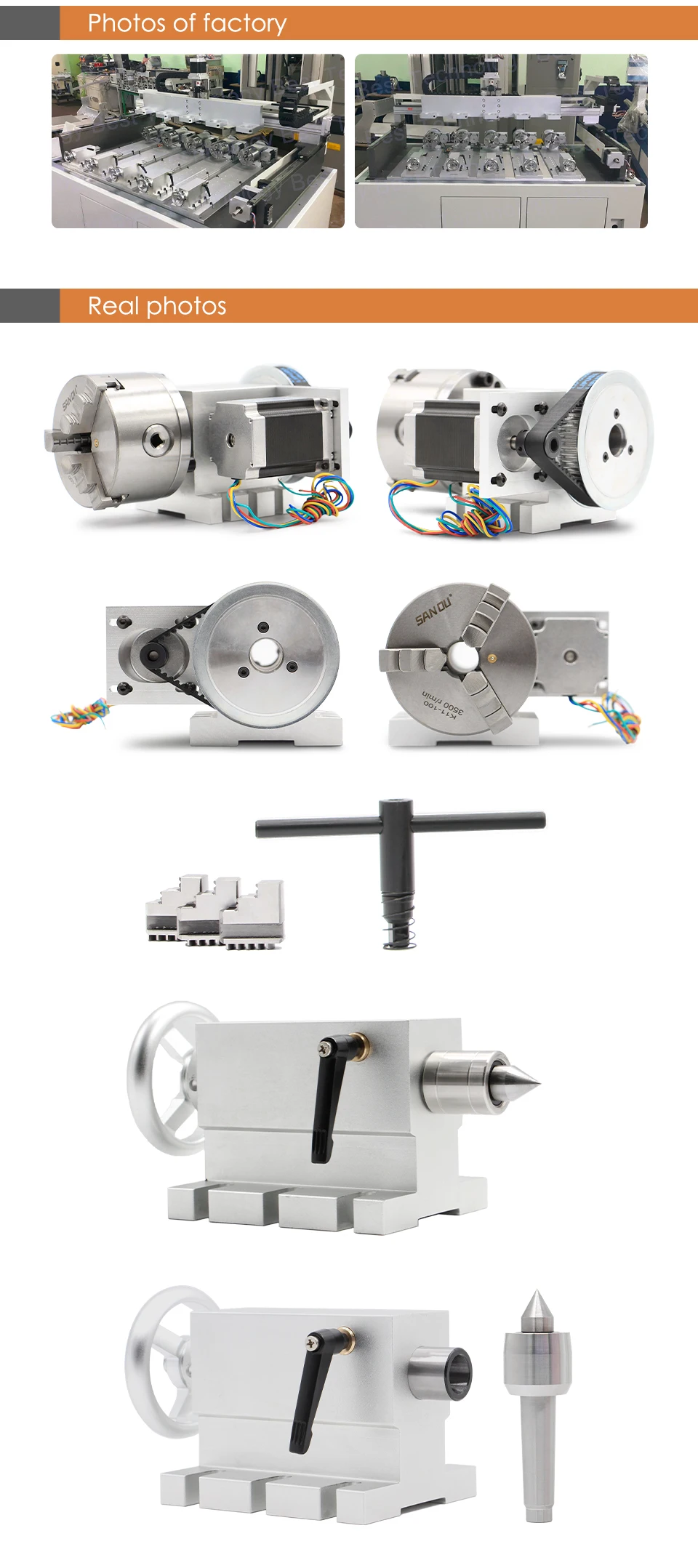 1pcs-4th Axis 100mm 3/4 jaw ( Positive jaw and counter jaw )1pcs- Tailstock Movable and Changeable/Unchangeable Tailstock With Head100mm three/four ja...