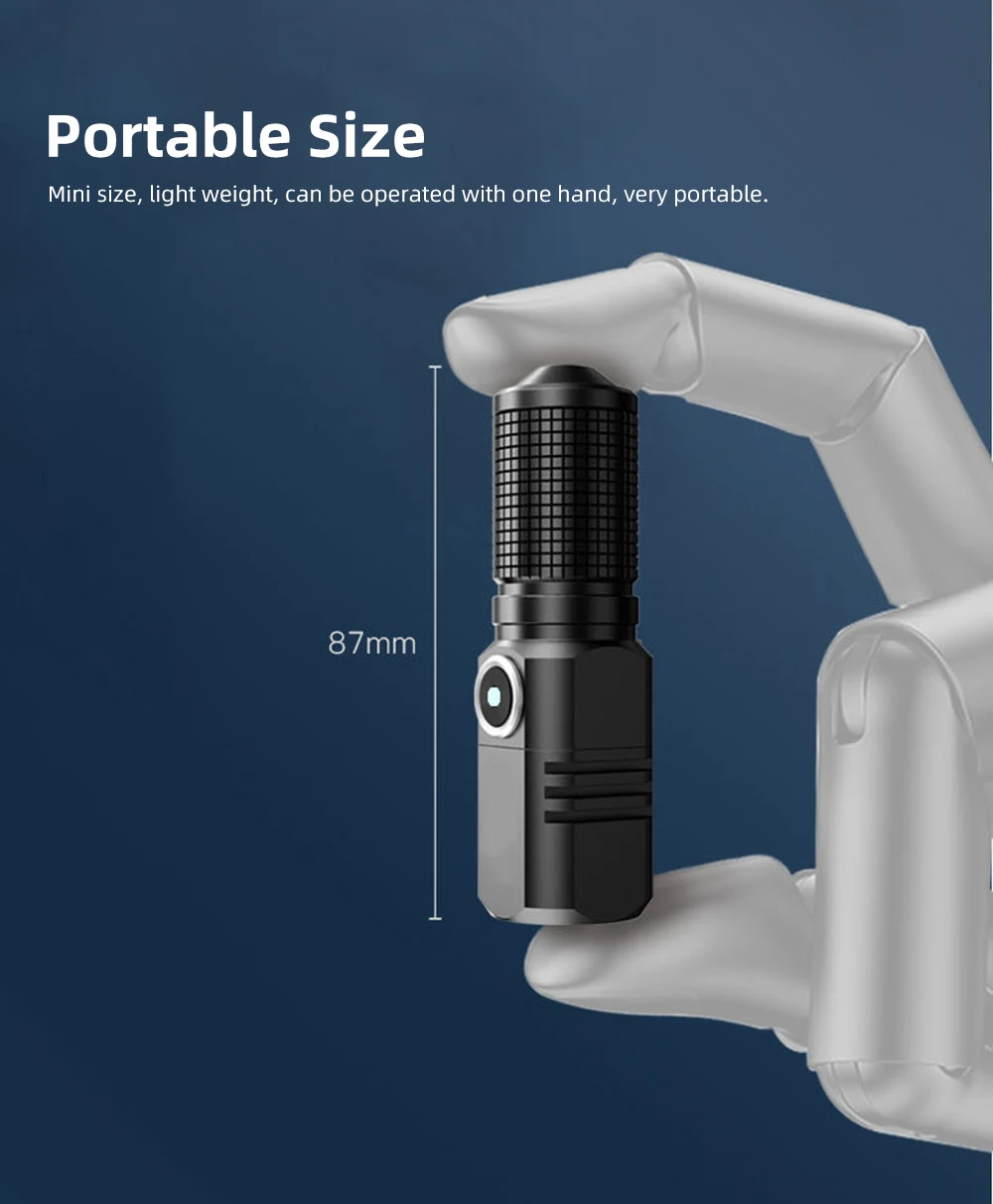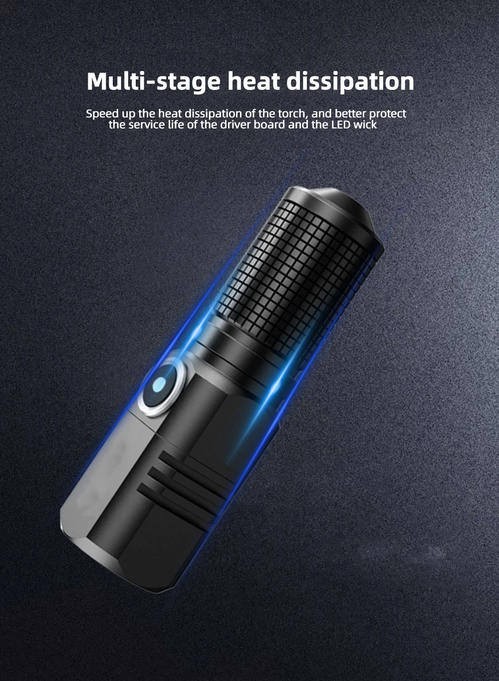 • مصباح يدوي:ينبعث من MINI XHP50 شعاع قوي من الضوء ، مما يجعله مثاليًا للأنشطة الخارجية مثل التخييم وصيد الأسماك.
