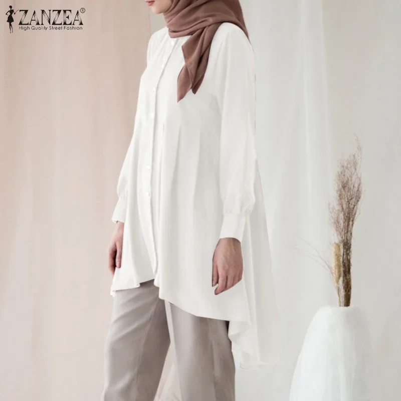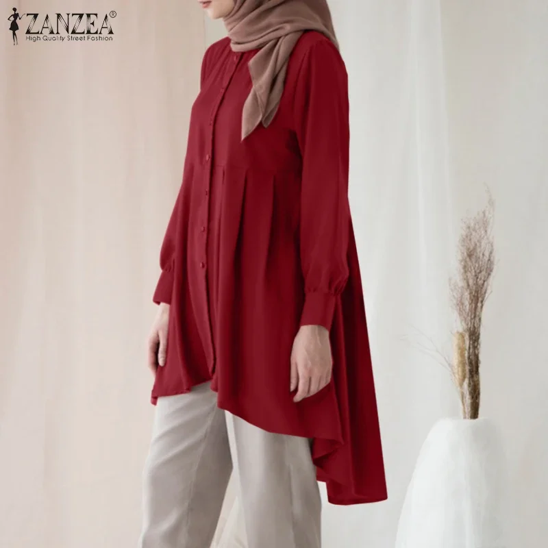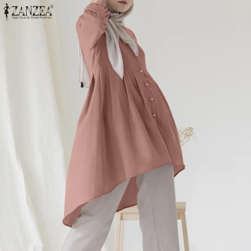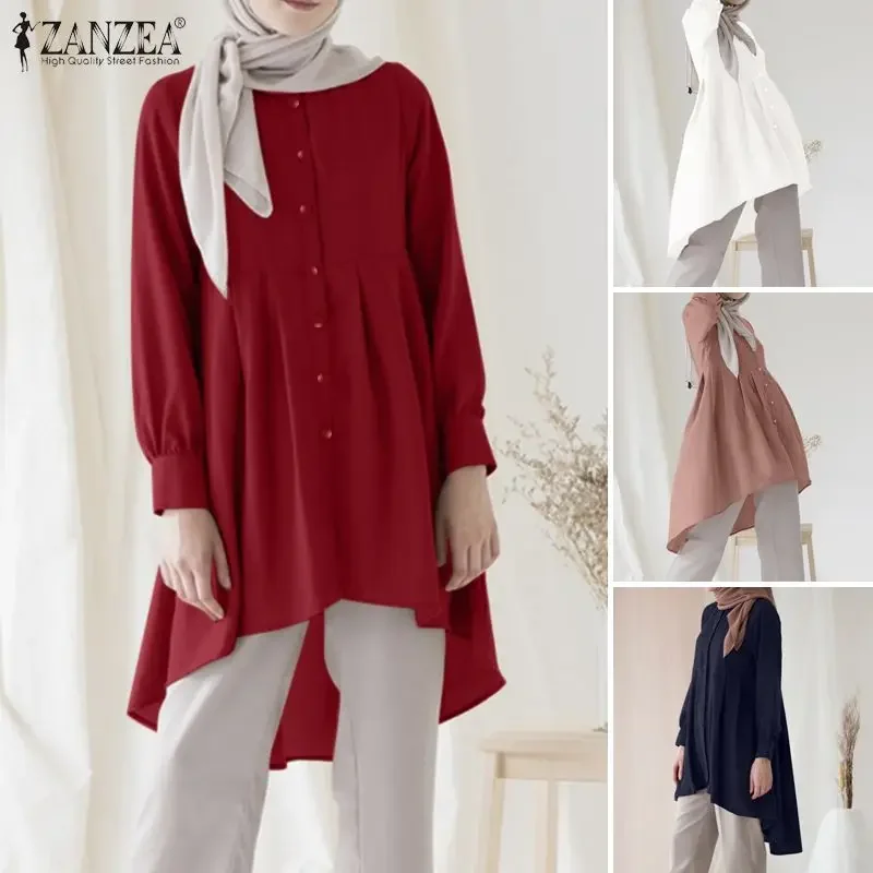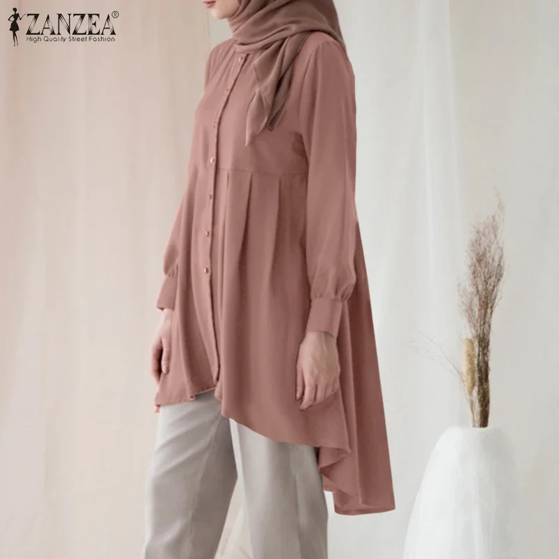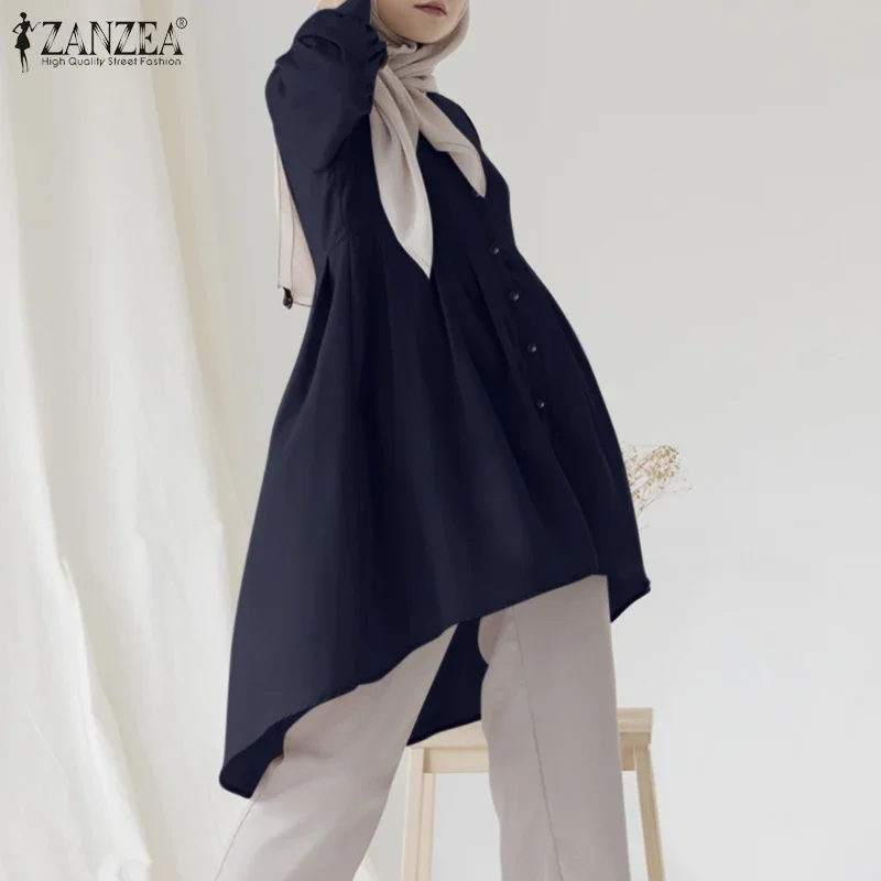 بلوزة نسائية بأكمام طويلة غير متماثلة من ZAZEA ، قمم عباية ، حجاب إسلامي ، قميص مسلم ، رقبة طية صدر ، ملابس عصرية ، خريف ،!