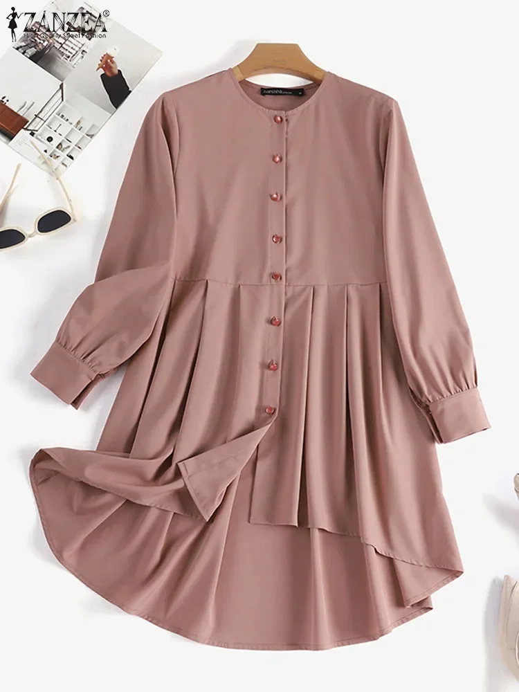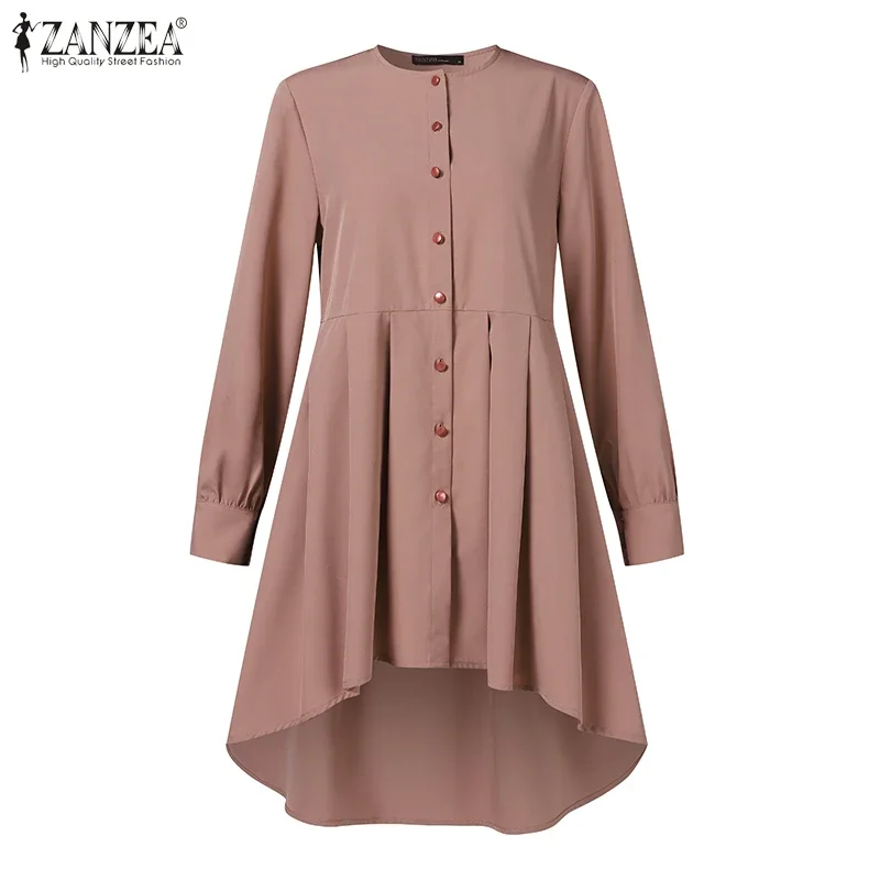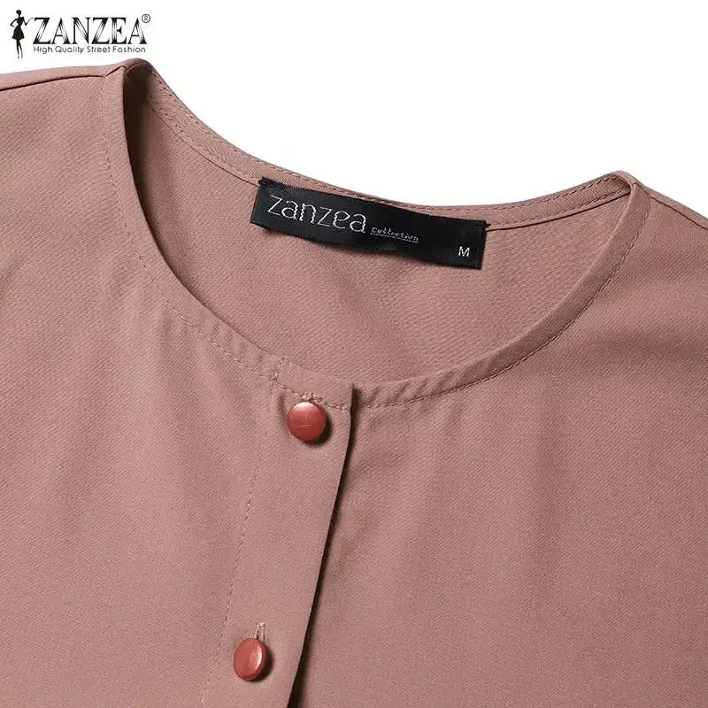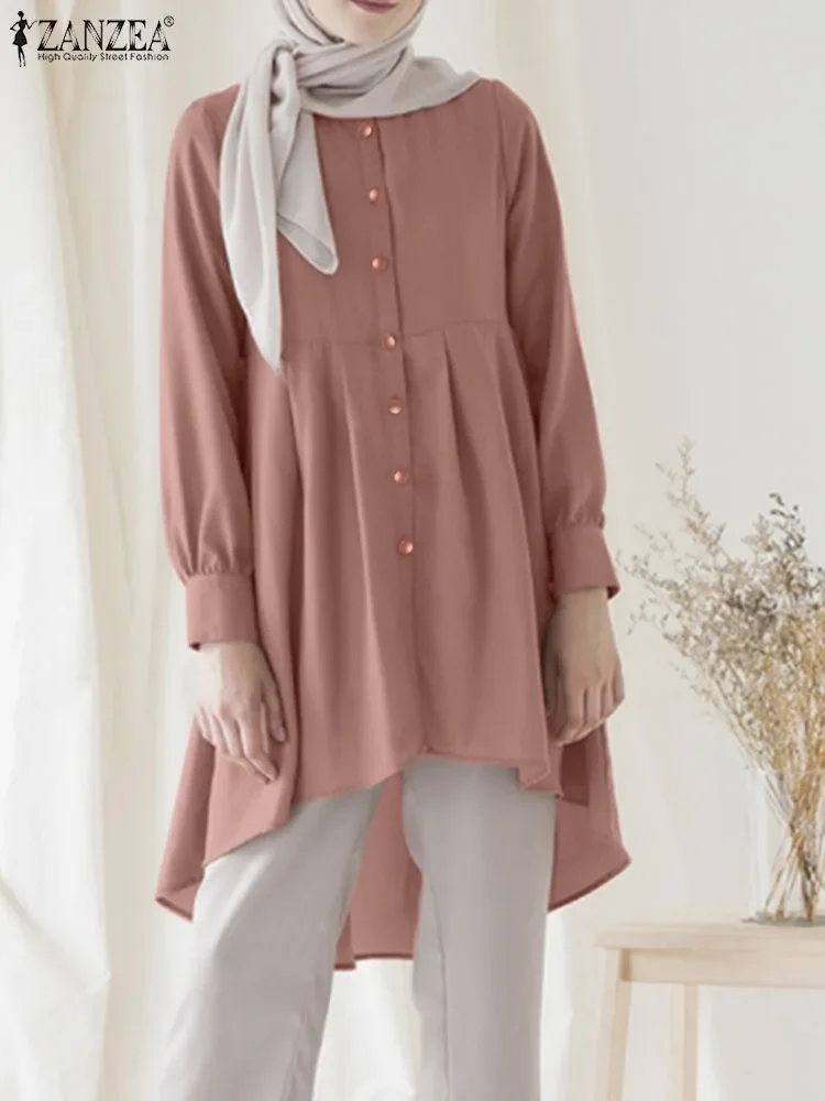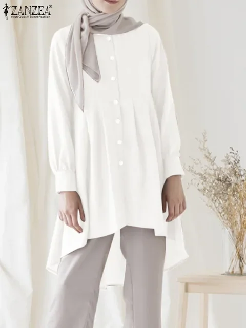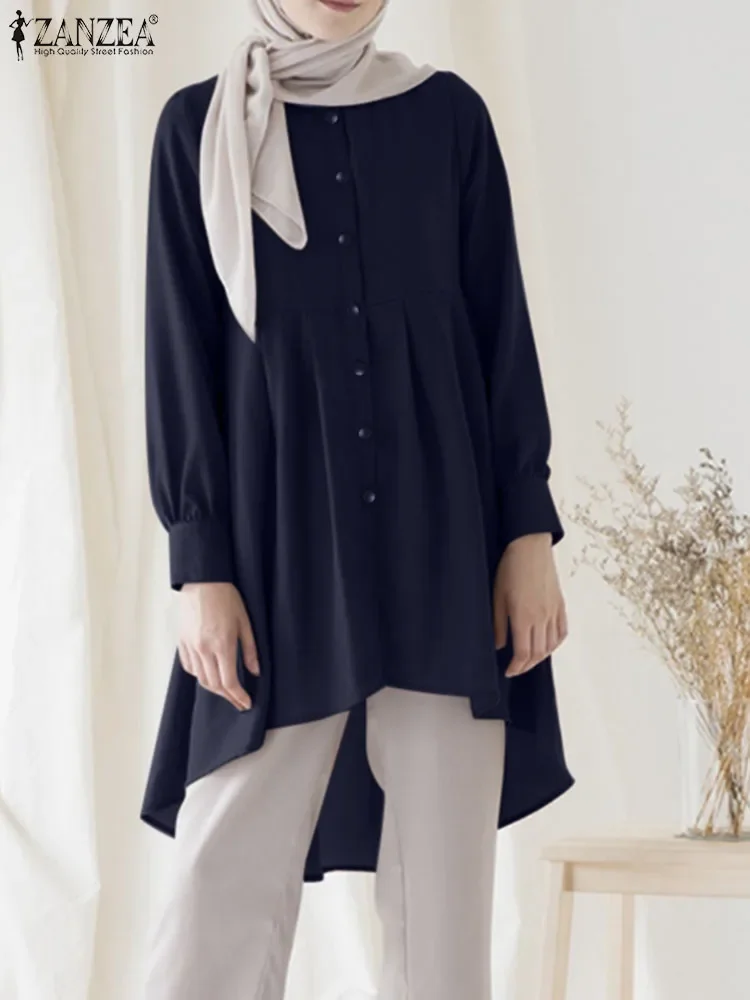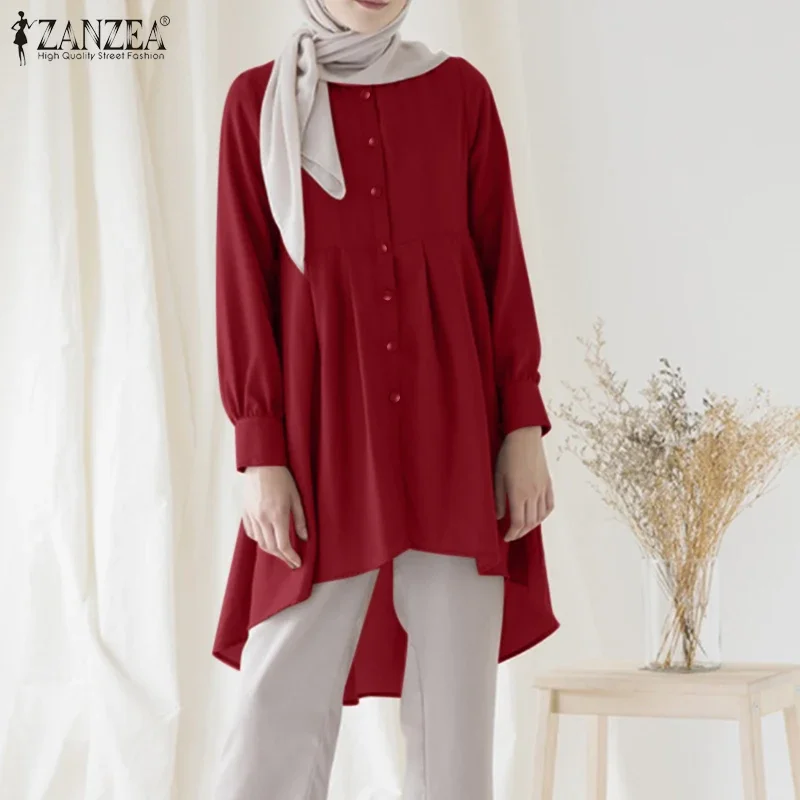 بلوزة نسائية بأكمام طويلة غير متماثلة من ZAZEA ، قمم عباية ، حجاب إسلامي ، قميص مسلم ، رقبة طية صدر ، ملابس عصرية ، خريف ،!