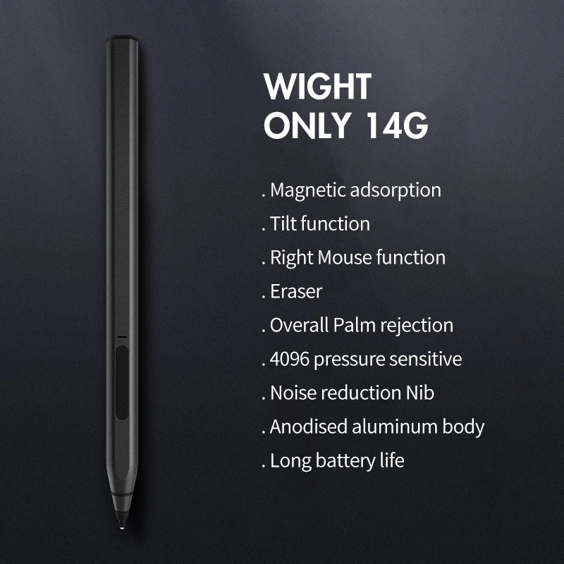 --يدعم القلم السطحي أقصى مستويات حساسية للضغط تبلغ 4096.تمت الموافقة عليه من قبل مايكروسوفت.مع 4096 نقطة ضغط، توفر لك تجربة رسم فريدة ورد فعل فوري، وإعادة إنتاج دقيقة للكتابة دون تأخير.