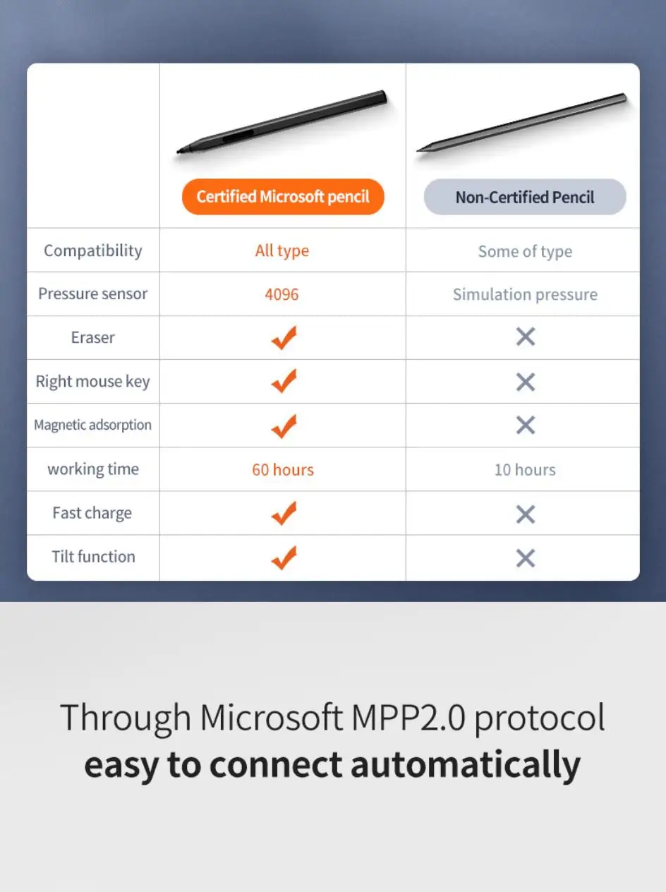 --قلم Microsoft مرخص رسميًا من قبل Microsoft وهو متوافق تمامًا.بنفس وظيفة مستشعر الضغط مثل القلم الأصلي، يمكنك إنشاء خط رفيع أو سميك عن طريق ضبط الضغط.