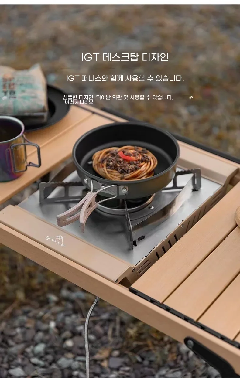 MOUNTAINHIKER Camping Folding Removable IGT Wood Table Gas Stove Portable Lightweight Camp BBQ Grill Table Outdoor Picnic Table
