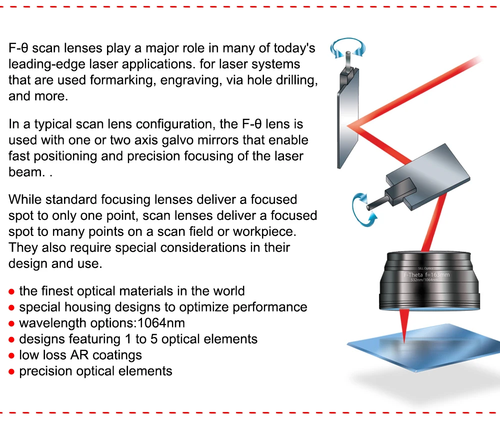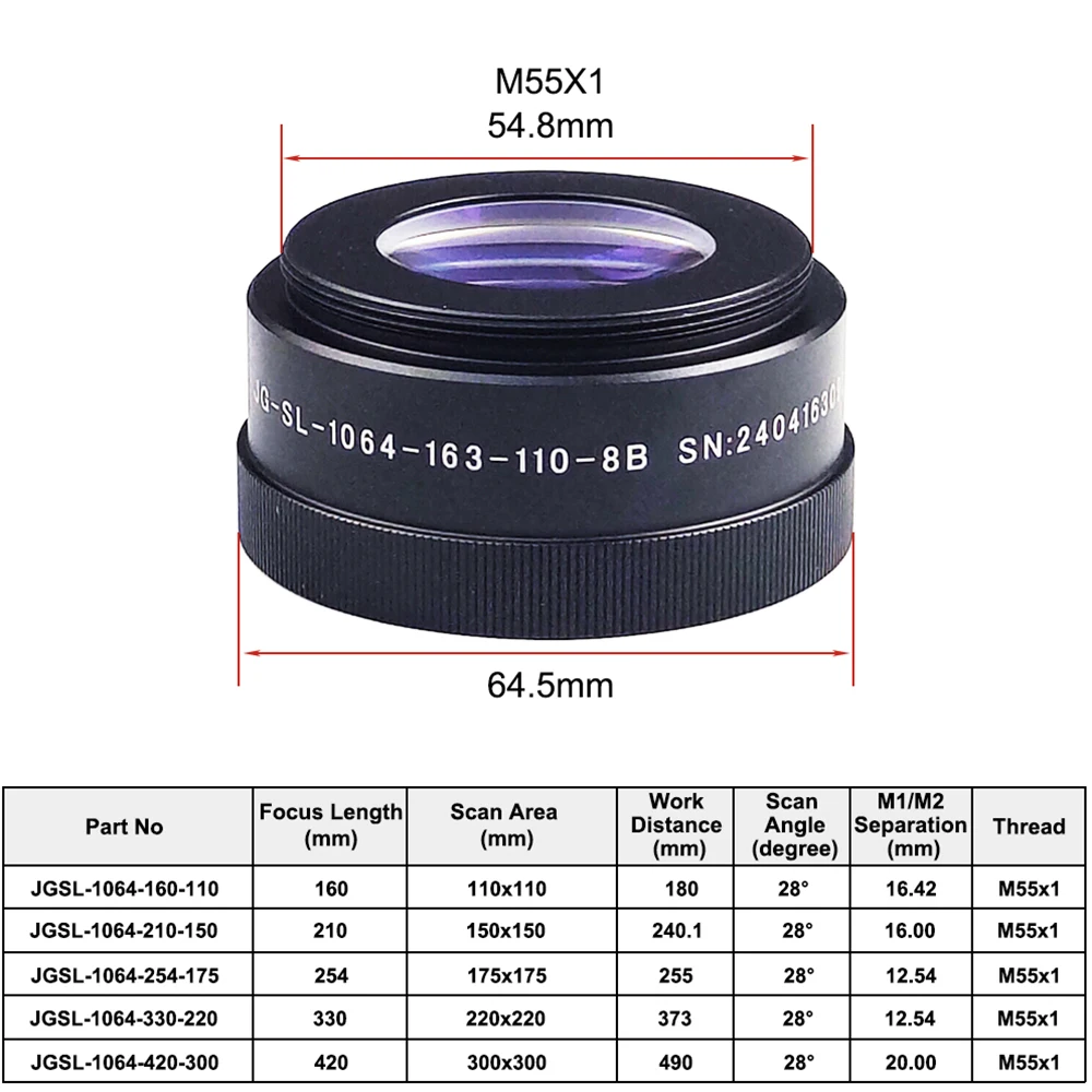 HUNST F-theta أجزاء عدسة المسح الضوئي الموضوع M55 1064nm الجلفانومتر عدسة المجال مناسبة لآلة الوسم بليزر الألياف 1064nm YAG