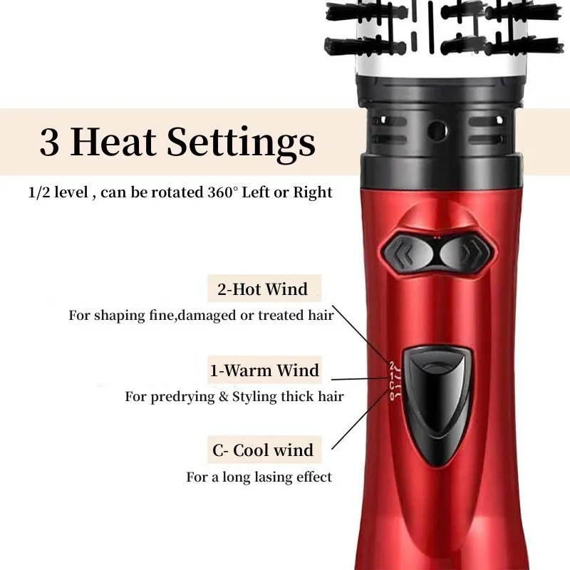 2 رأس قابل للاستبدال 360 تدفق الهواء الدوار فرشاة الهواء الساخن مكواة فرد الشعر بكرة الشعر الحديد Volumizer منفاخ مجفف الشعر الكهربائي مشط