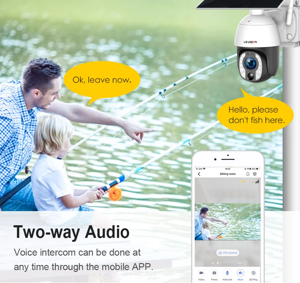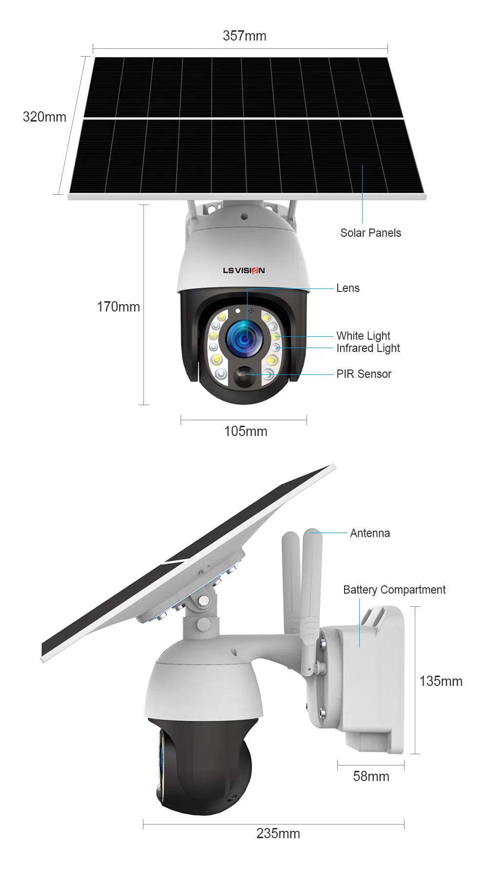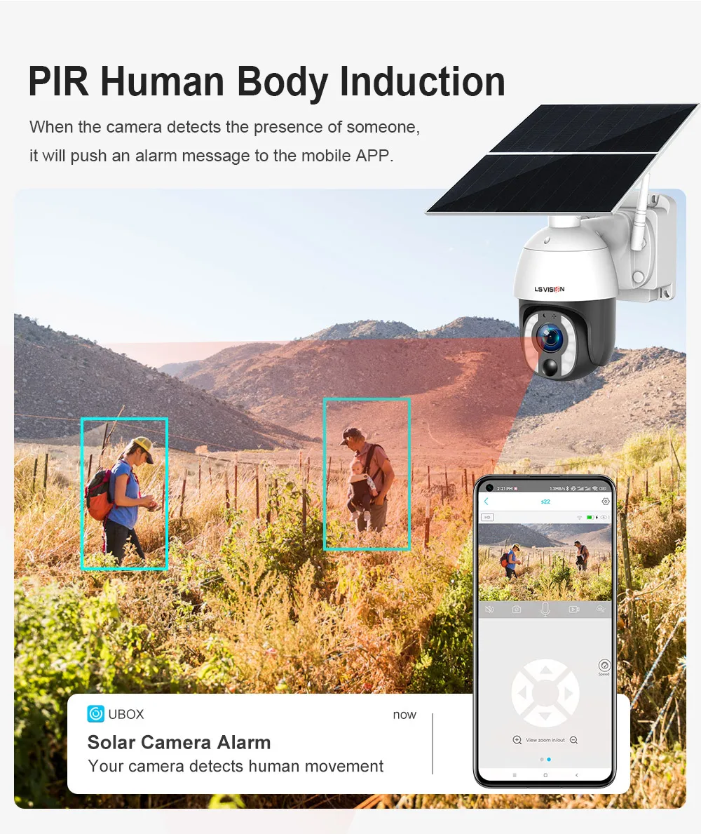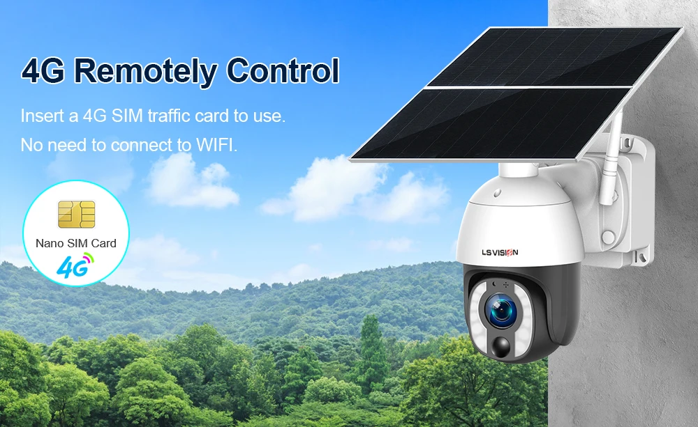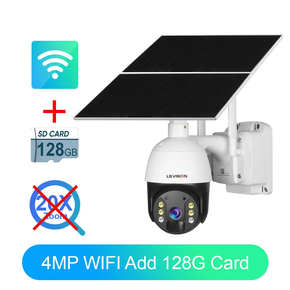 كاميرا أمان تعمل بالطاقة الشمسية LS VISION 4K 8MP تكبير 20X تسجيل 24/7 ساعات 4G/WiFi تتبع تلقائي كاميرات بطارية 30000 مللي أمبير في الساعة لوحة 20 وات