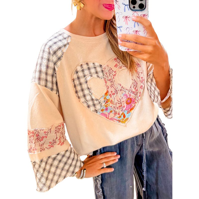 بلوزة رقبة مستديرة جديدة للفصل الخريفي للنساء، هودي منعش ومطبوع بتصميم أنيق وعصري فضفاض للنساء.