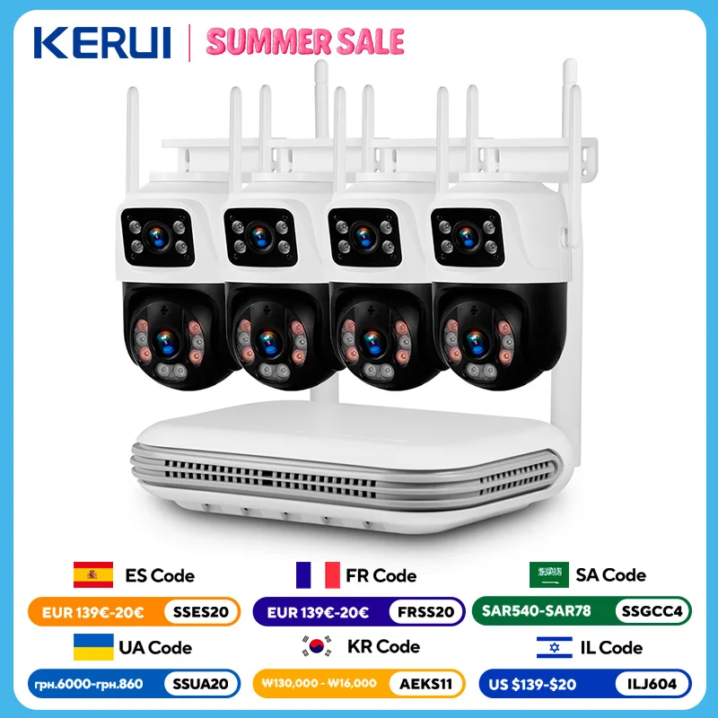 KERUI 6MP Full HD 8CH اللاسلكية NVR الأمن WIFI IP عدسة مزدوجة نظام الكاميرا عدة مراقبة خارجية CCTV مسجل فيديو الصوت