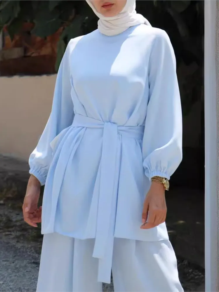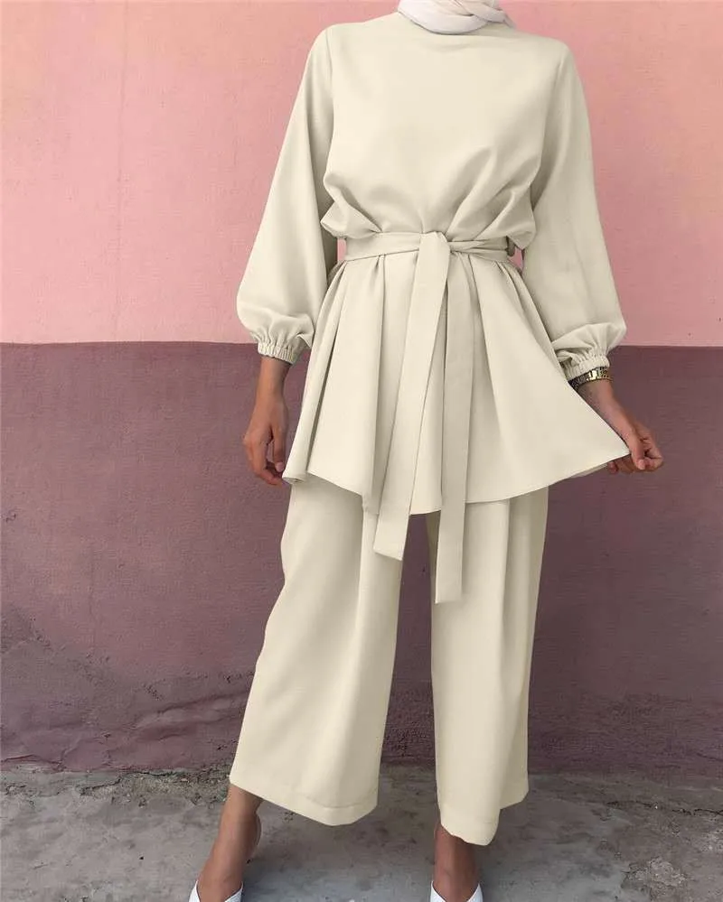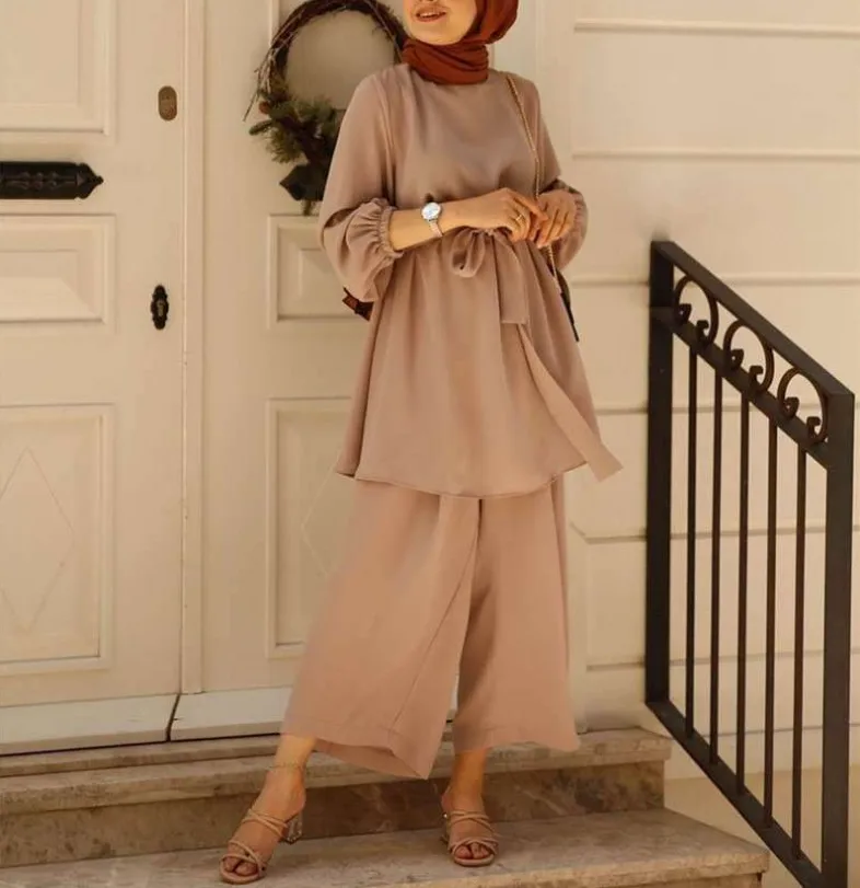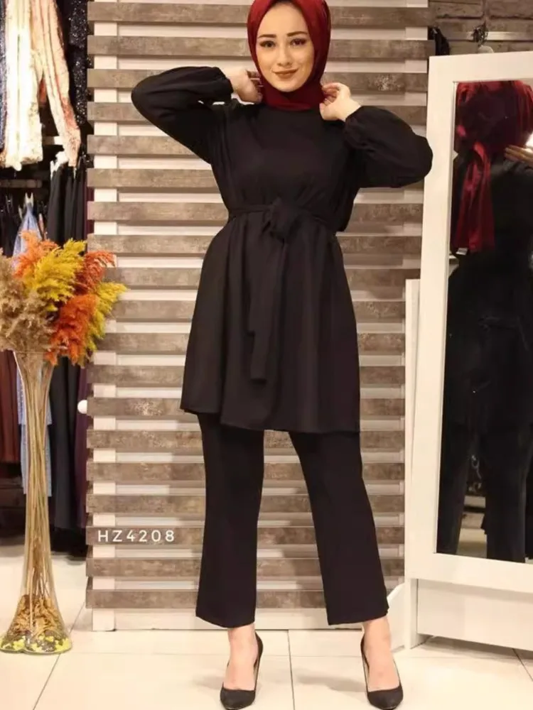 عيد مسلم قطعتين مجموعة الإسلام المرأة الدانتيل يصل بلوزة وسراويل واسعة الساق الدعاوى ربيع الخريف سيدة مجموعات بلون ملابس غير رسمية