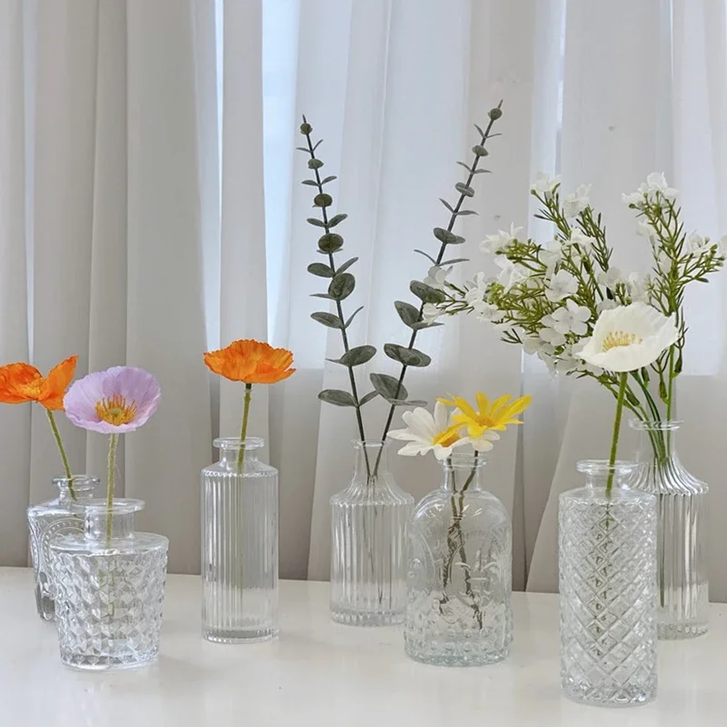 مزهرية زجاجية شفافة صغيرة مزهرية على شكل زهرة إسكندنافية مزهرية نباتية مائية لغرفة المعيشة الحديثة زخرفة زجاجية ديكور منزلي للزفاف والزفاف
