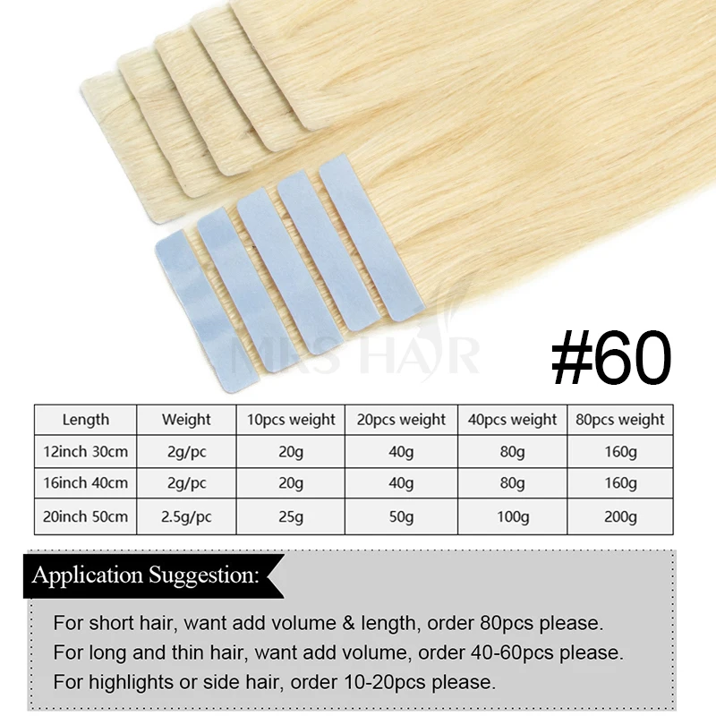 MRSHAIR Tape in Extensions Human Hair Machine Remy Mini Micro Tape Ins Double Sided Seamless Adhensive Glue Tape In Hair Blonde