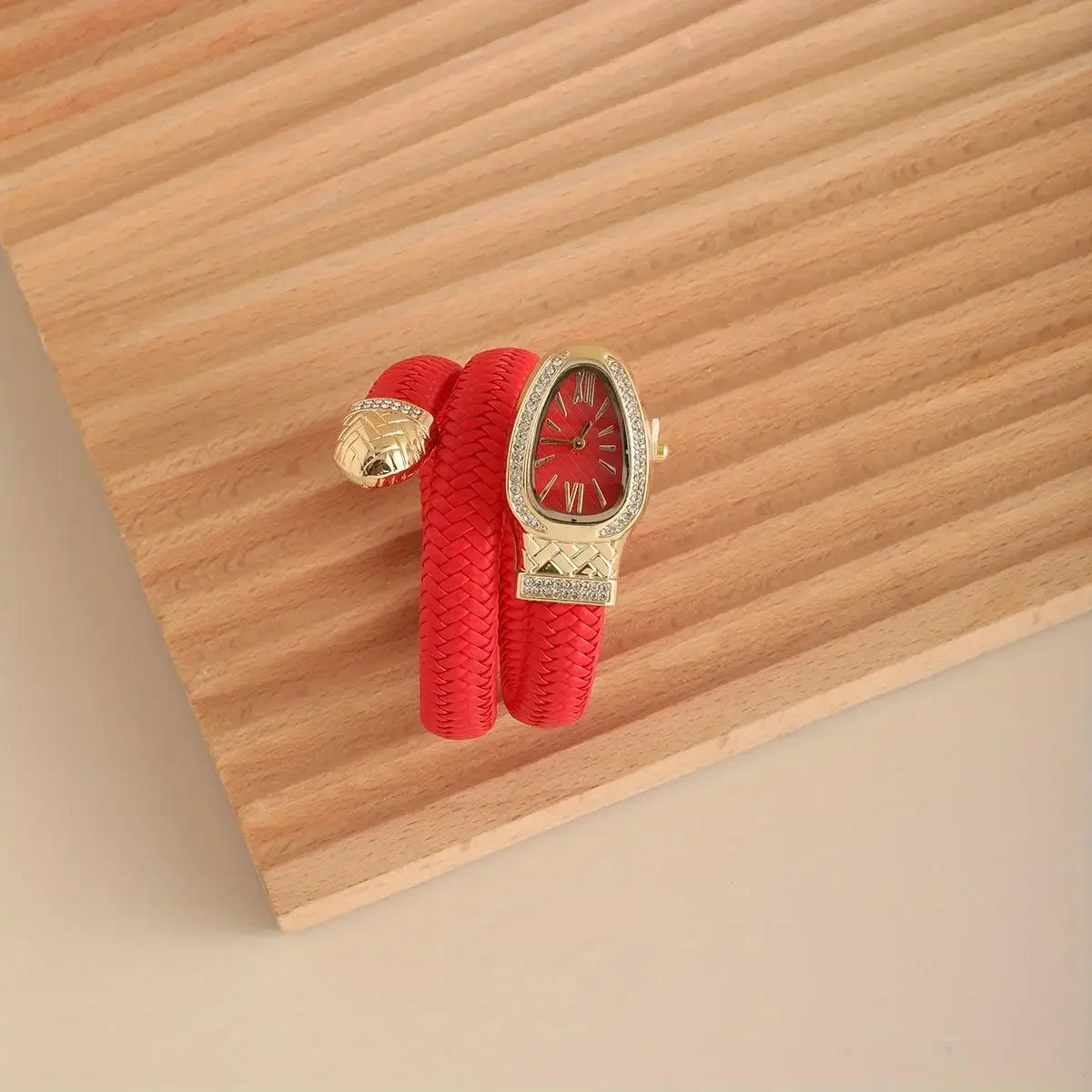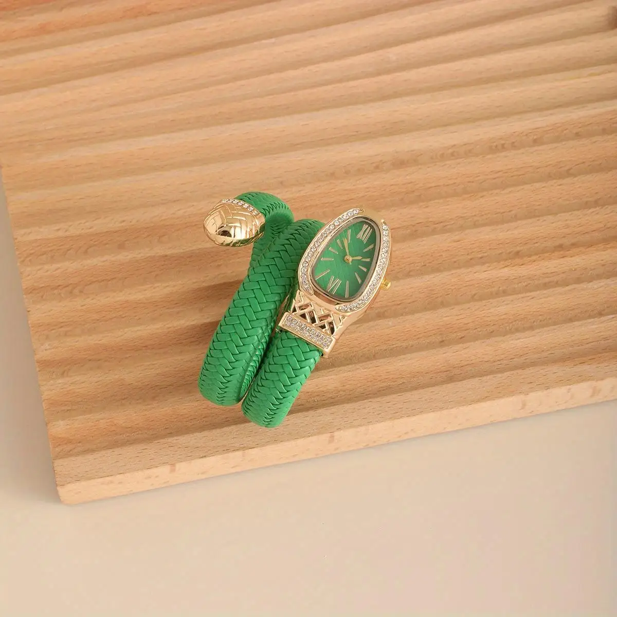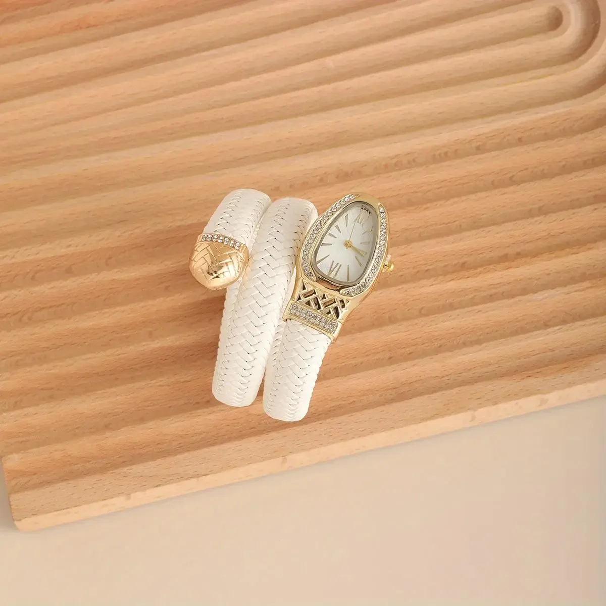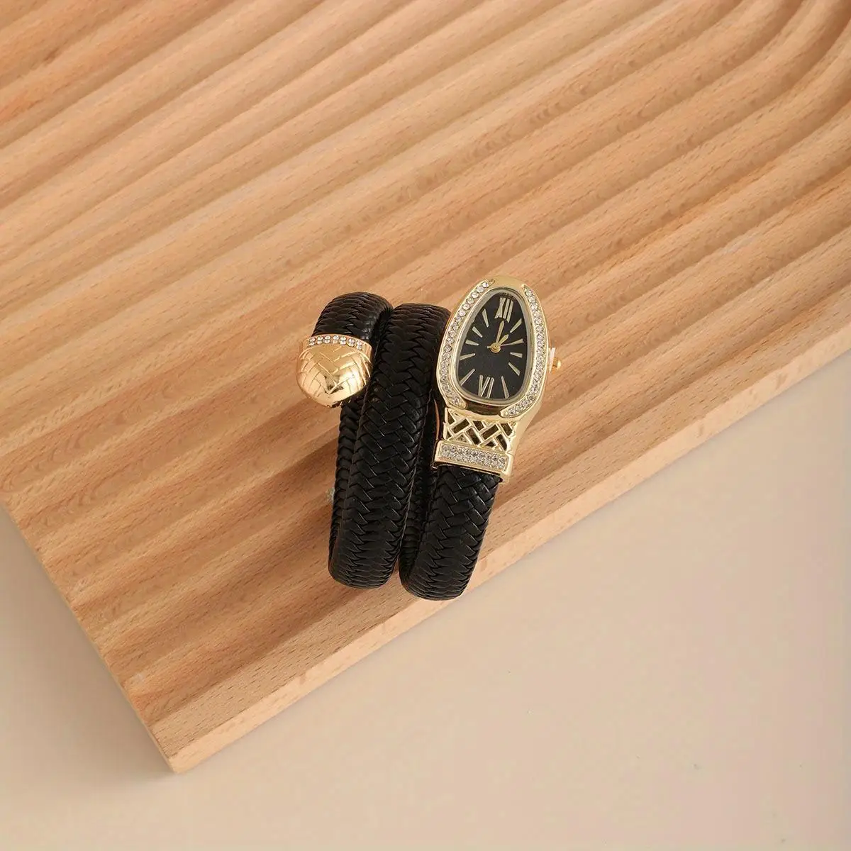Fashion Women Snake Shape Quartz Watches weave Luxury Rhinestone Roma Dial Wristwatch Girls Clock Reloj Mujer