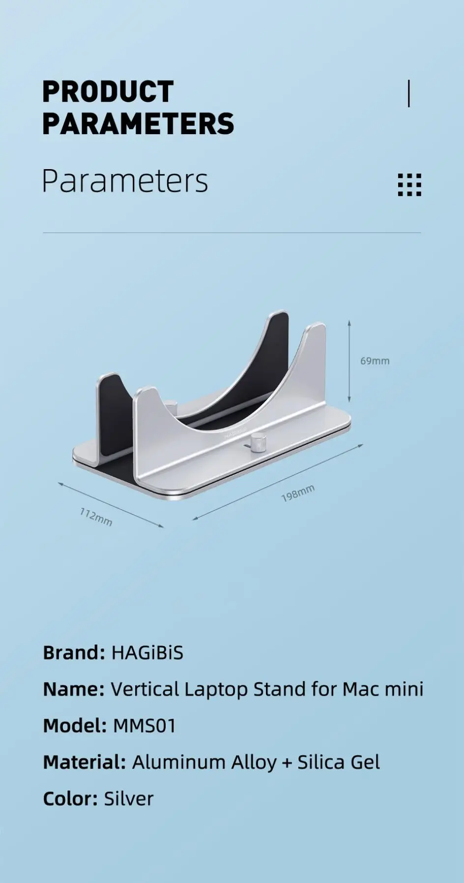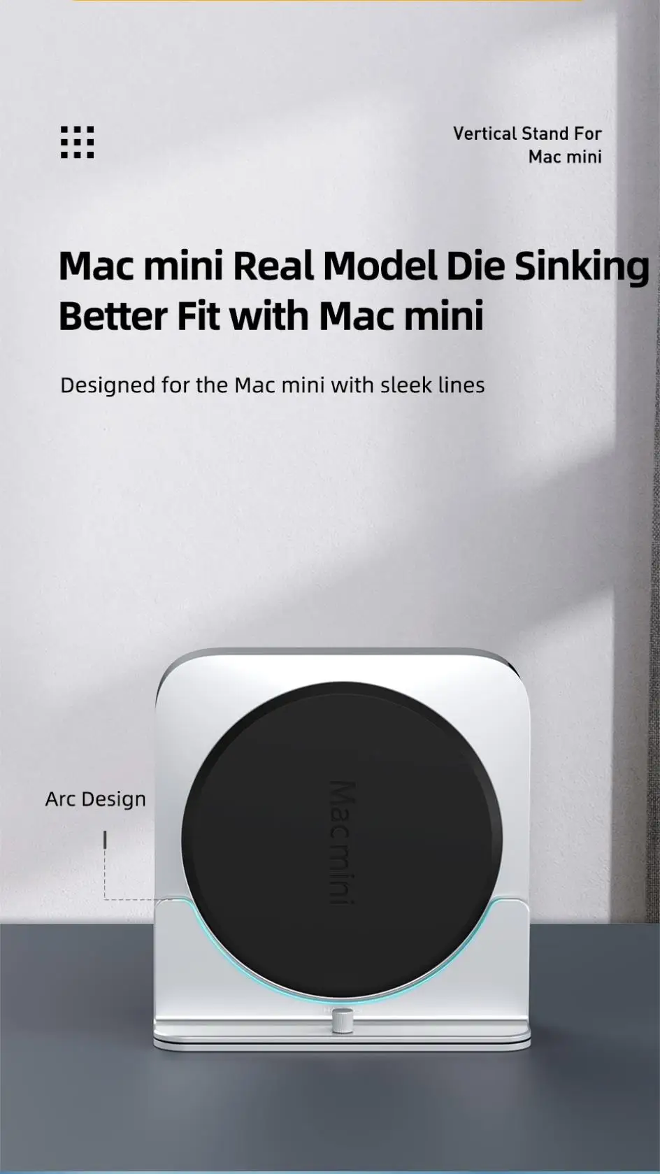 حامل عمودي 2025 لجهاز Mac Mini مصنوع من سبائك الألومنيوم للكمبيوتر المحمول وحامل سطح المكتب مضاد للانزلاق وحامل كمبيوتر قابل للتعديل لجهاز Apple MAC Mini