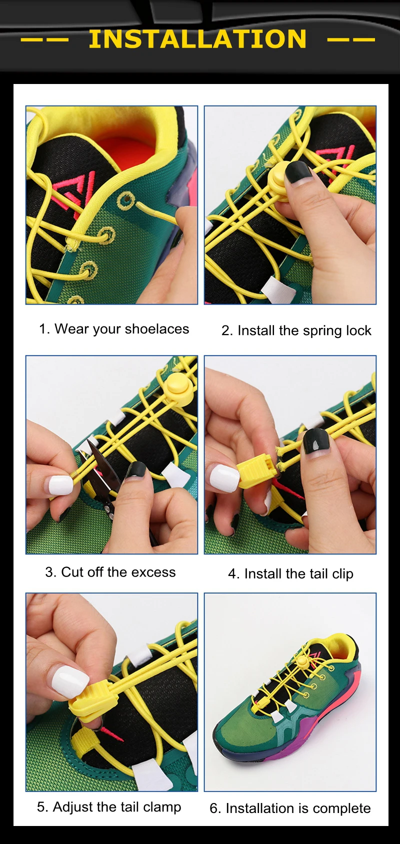أربطة أحذية بدون ربط مناسبة لجميع الأحذية، أربطة أحذية مرنة بقفل زنبركي دائري، يمكن ارتداؤها بسرعة في 1 ثانية، دانتيل رياضي كسول للمشي لمسافات طويلة
