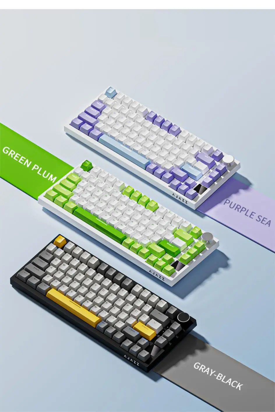 2025. AJAZZ AK820/AK820Pro لوحة المفاتيح الميكانيكية TFT شاشة متعددة الوظائف مقبض لوحة مفاتيح الألعاب السلكية/2.4 جيجا هرتز/BT توصيل الكمبيوتر