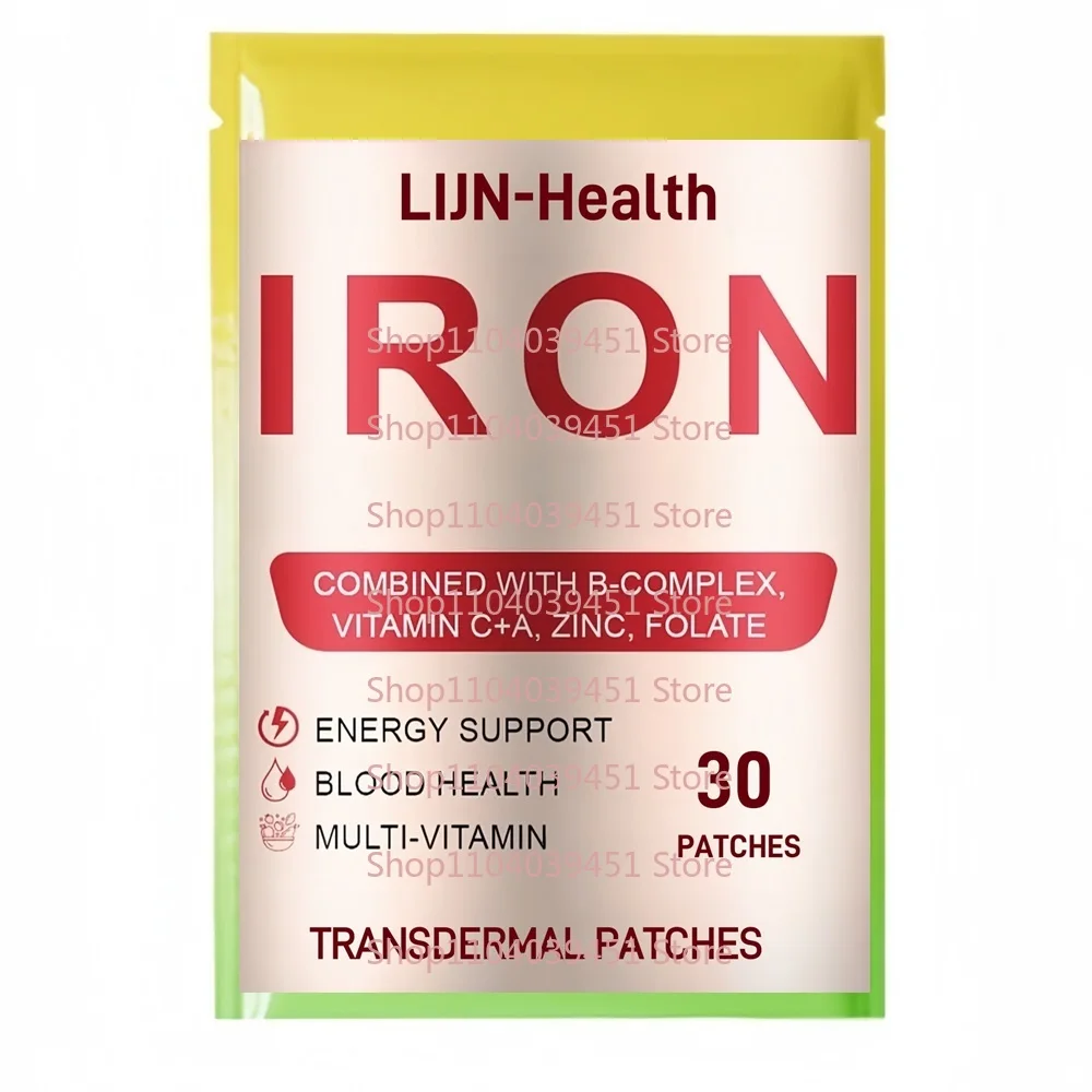 30 رقعة حديدية عبر الجلد للنساء والرجال مع فيتامين أ، ب-مجمع، البيوتين، دعم طاقة الزنك وصحة المناعة
