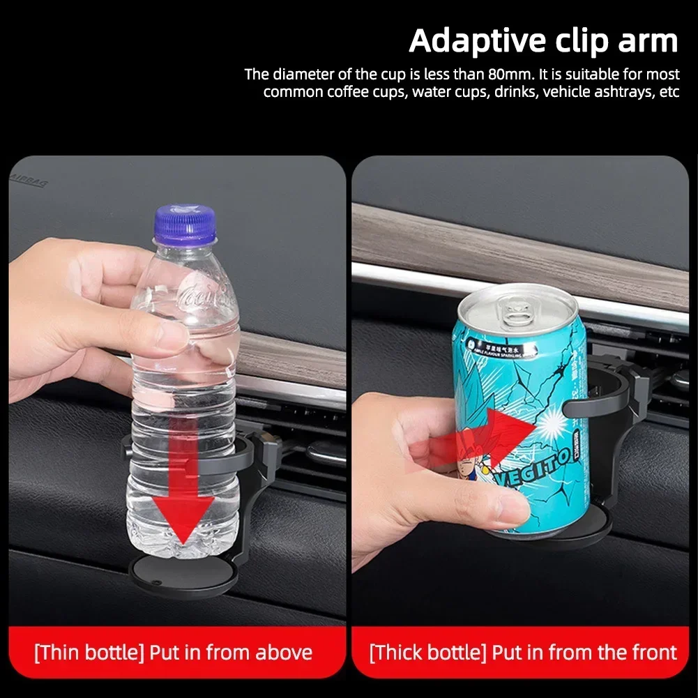 حامل أكواب للشرب قابل للطي والمحمول بمنفذ السيارة ومضاد للانزلاق ومستقر 360 درجة ° تدوير الملحقات الداخلية للسيارة بمشبك قابل للإزالة